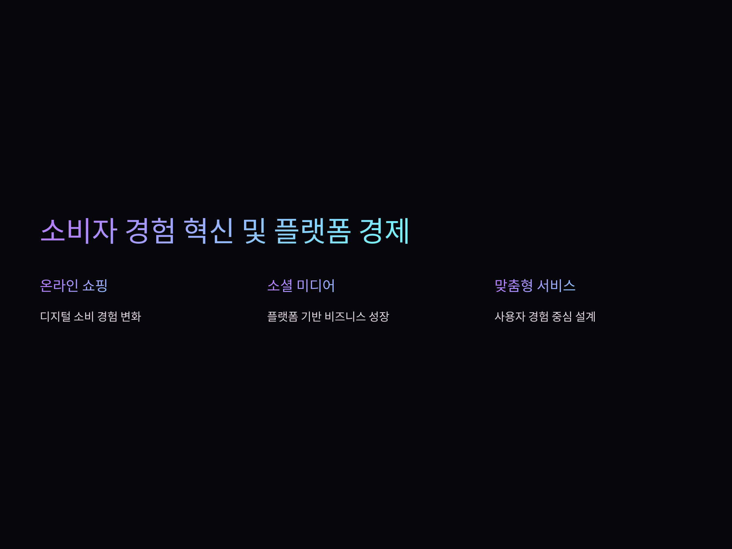 디지털 혁신이 소비자 경험을 크게 변화시키고 있는 가운데, VC 투자자들은 다양한 소비자 경험 혁신 및 플랫폼 기반 기업에 대한 투자를 증가시킬 것입니다. 온라인 쇼핑, 소셜 미디어, 스트리밍 서비스 등 플랫폼 경제는 빠르게 성장하고 있으며, 이러한 변화는 새로운 투자 기회를 만들어내고 있습니다.
