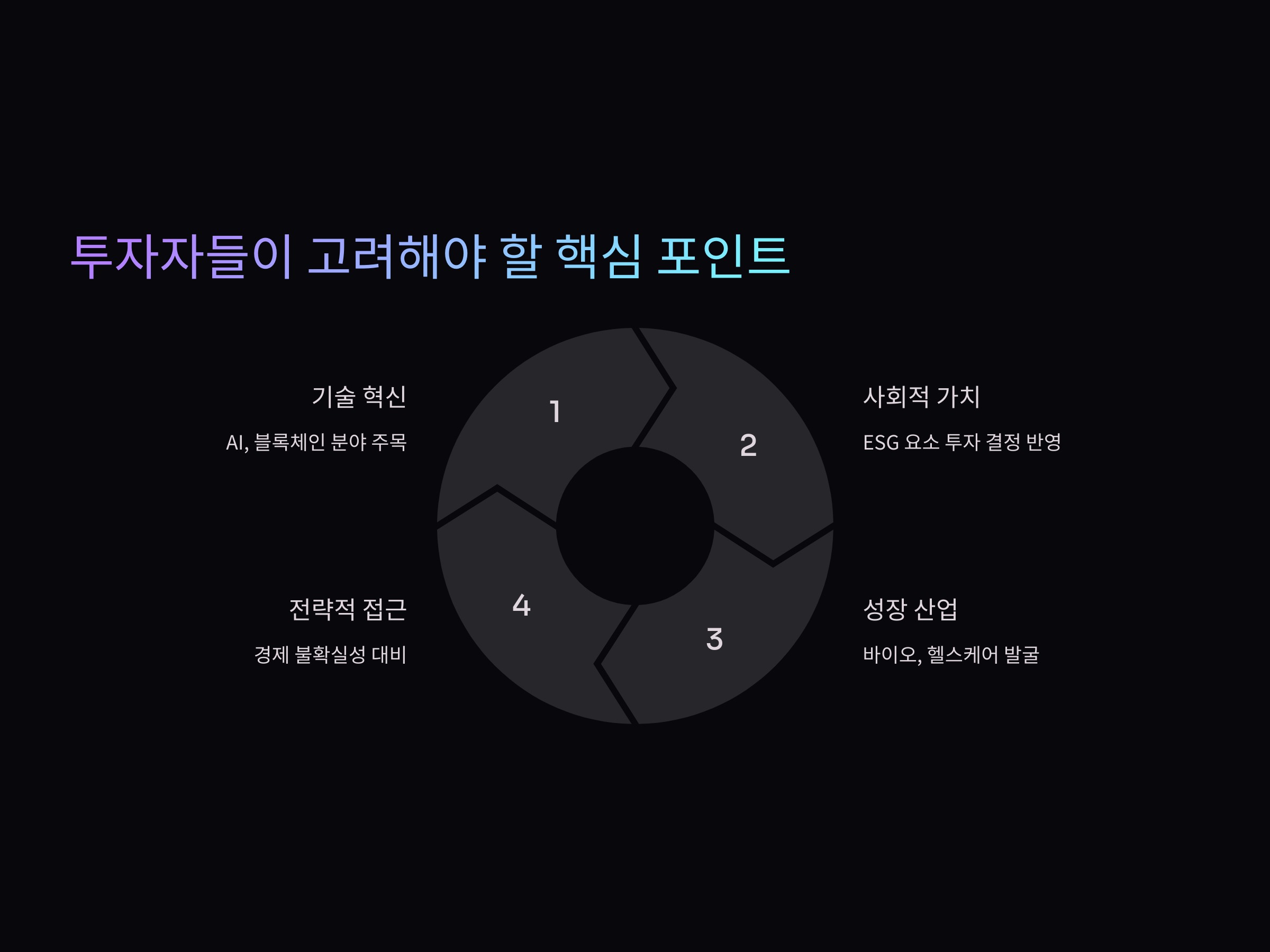 2025년 벤처캐피털 시장은 다양한 기술 혁신과 사회적 변화에 의해 주도될 것입니다. AI, 블록체인, ESG, 바이오 기술 등 다양한 분야에서의 투자 기회가 커지고 있으며, VC 투자자들은 이를 바탕으로 전략적인 투자를 진행해야 할 시점입니다. 또한, 경제 불확실성을 고려한 신중한 접근이 필요한 시점이기도 합니다.