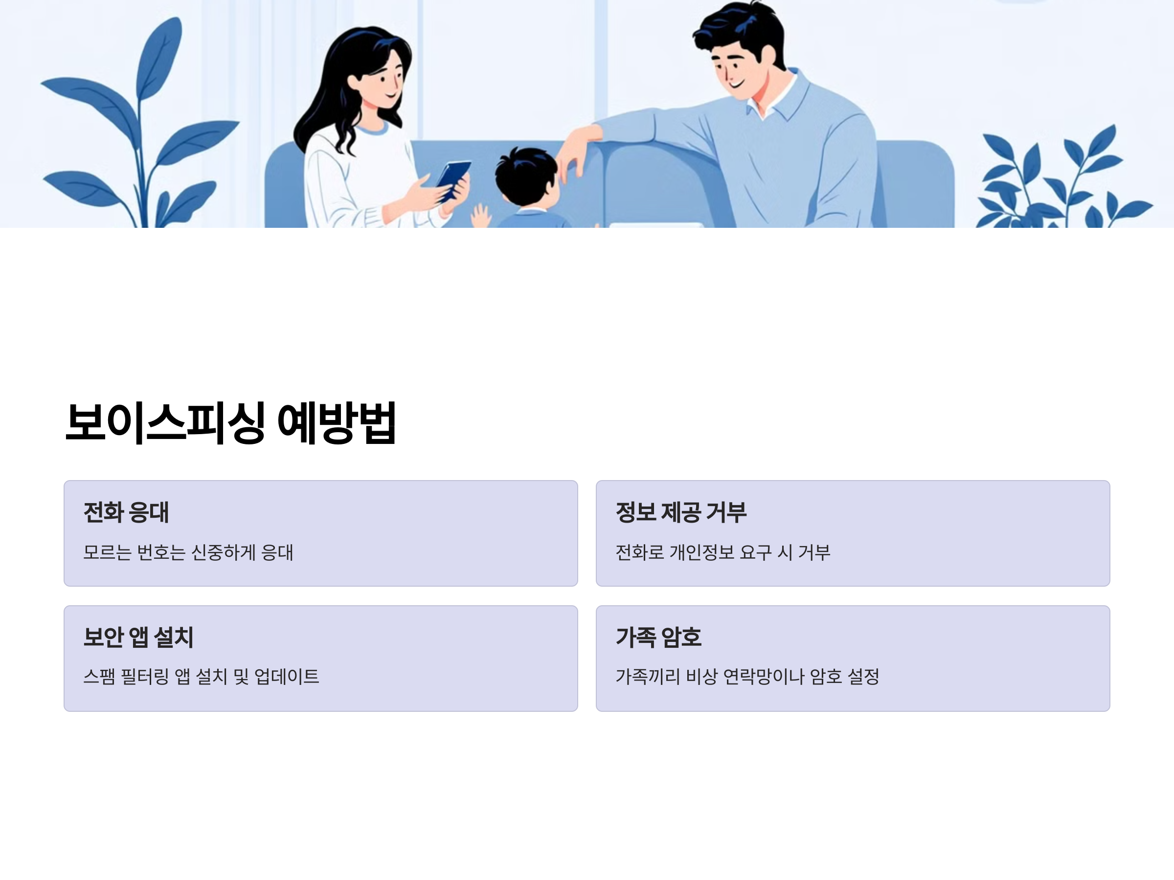 또 다른 방식은 자녀나 가족을 사칭하여 “급하게 돈이 필요하다”고 요구하는 수법입니다. 최근에는 AI 음성 합성을 통해 실제 가족처럼 말하는 기술이 적용되어 피해가 더욱 증가하고 있습니다. 이처럼 보이스피싱은 끊임없이 진화하고 있으므로, 일단 전화 내용이 이상하다고 느껴진다면 즉시 의심하고 대처하는 것이 핵심입니다.