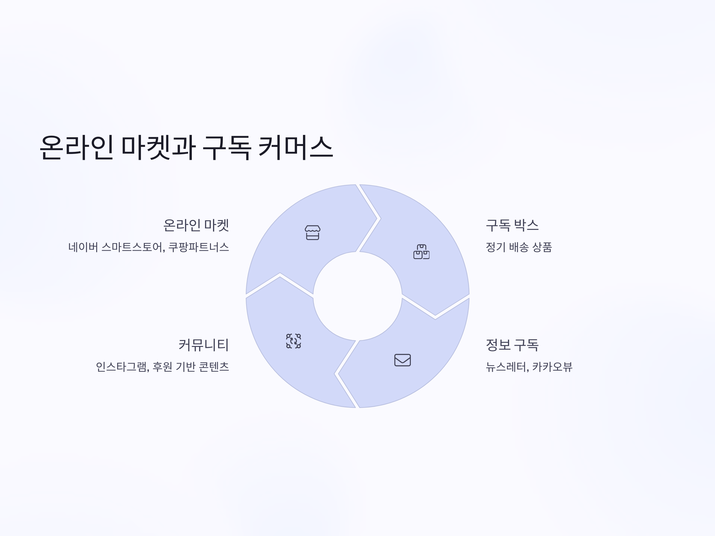 네이버 스마트스토어, 쿠팡파트너스, 아마존KDP, 텀블벅 같은 온라인 마켓플레이스는 누구나 손쉽게 진입할 수 있는 수익 채널입니다. 여기에 더해 구독형 커머스 플랫폼을 활용하면 일정한 월수입을 꾸준히 확보할 수 있습니다. 대표적으로 '구독 박스', '정보 구독 서비스', '후원 기반 콘텐츠' 등이 있습니다.