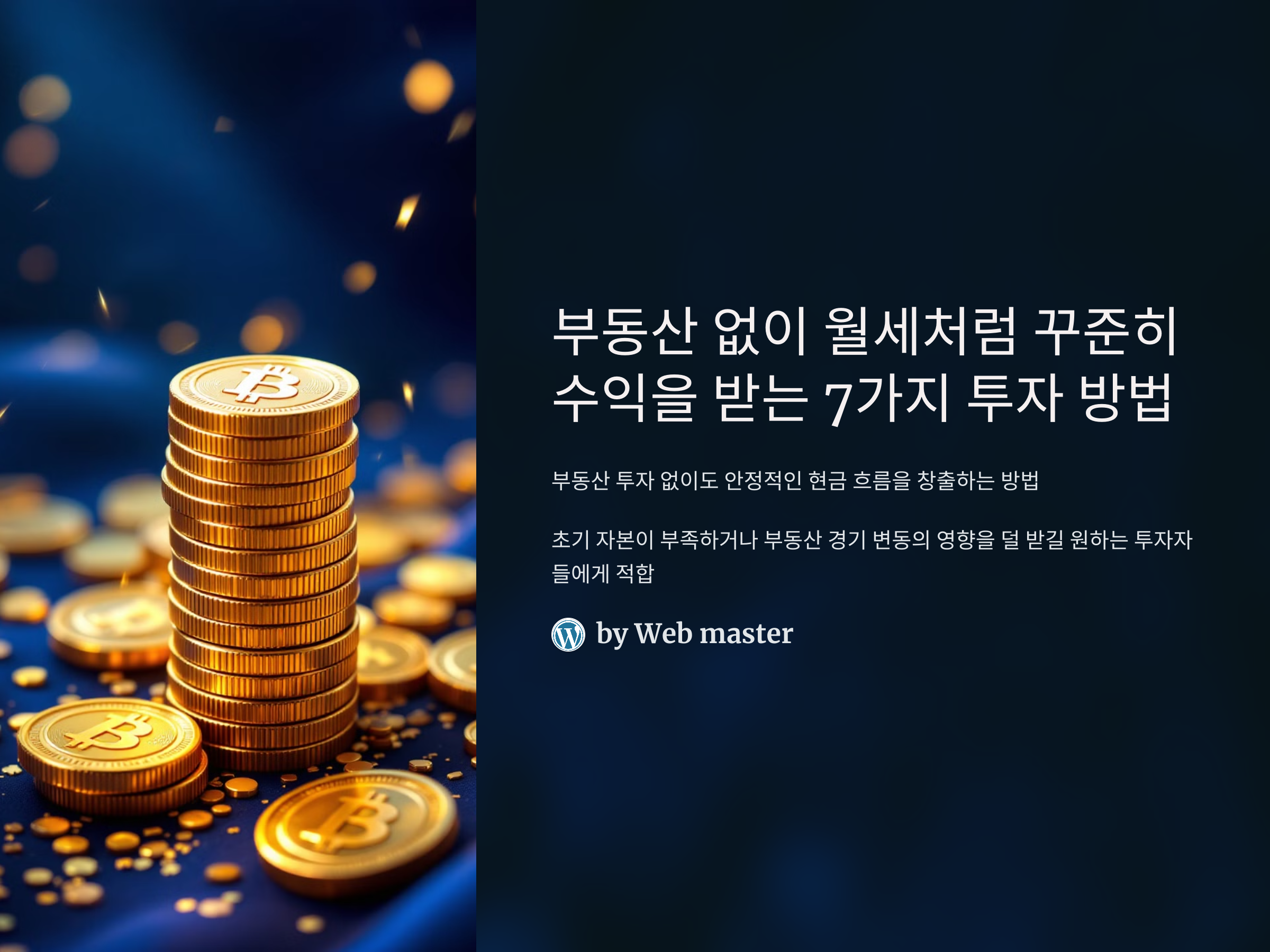 부동산 투자 없이도 월세처럼 꾸준한 수익을 창출하는 방법이 점점 주목받고 있습니다. 특히 초기 자본이 부족하거나, 부동산 경기 변동의 영향을 덜 받으면서도 안정적인 현금 흐름을 원하는 투자자들에게는 매우 매력적인 옵션이 됩니다. 최근에는 디지털 자산, 배당주, P2P 대출, 저작권 수익 등 다양한 투자 방식이 등장하며, 부동산 이외의 월세형 수익을 창출하는 방법이 더욱 확대되고 있습니다. 이번 글에서는 부동산 없이도 월세처럼 안정적으로 돈을 벌 수 있는 7가지 투자 방법을 소개합니다.