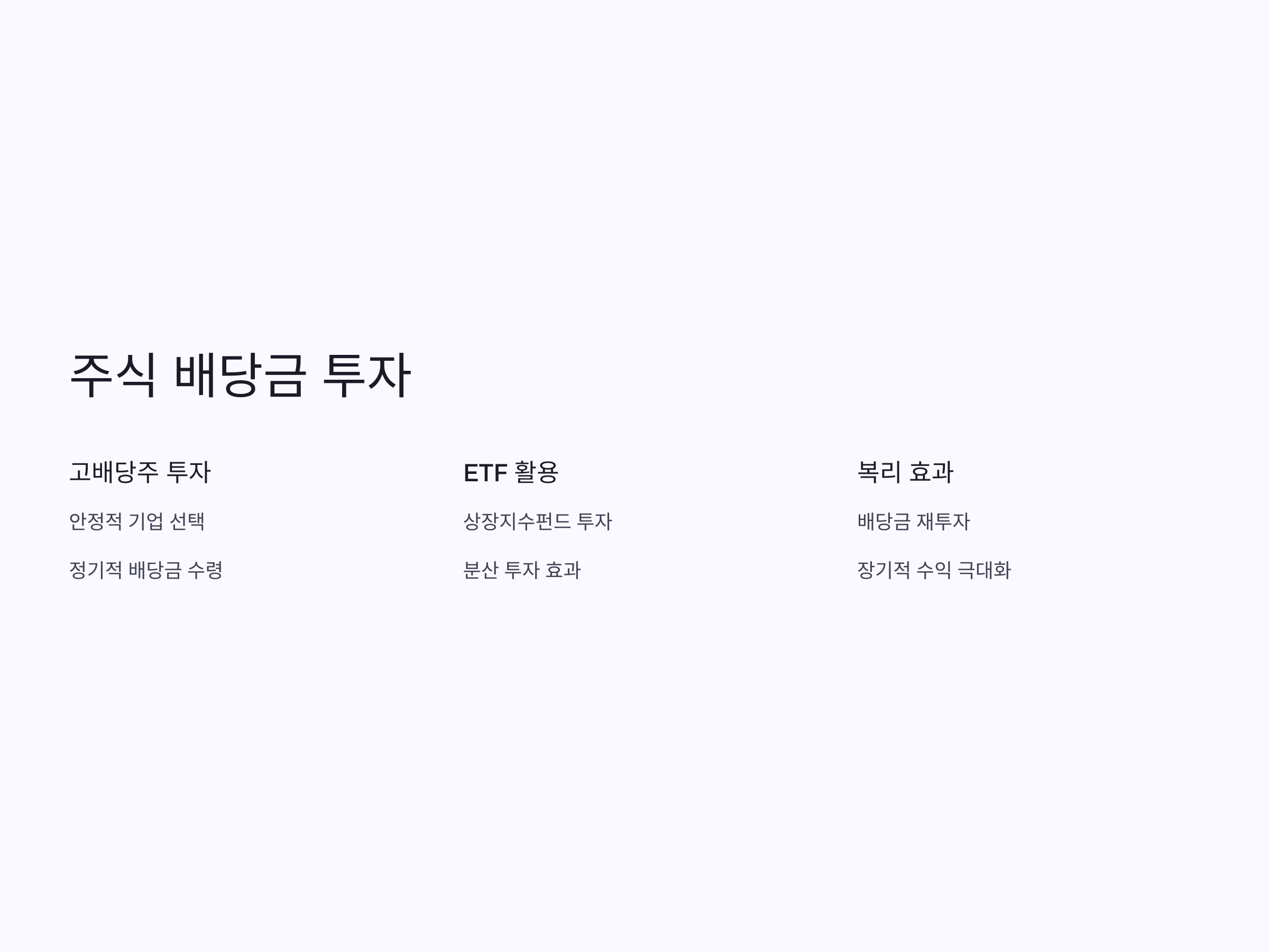 배당금 수익을 통해 월세처럼 지속적인 현금 흐름을 원한다면, 배당 성향이 높은 기업에 투자하거나 ETF(상장지수펀드) 등을 고려해볼 수 있습니다. 또한 배당금을 재투자할 수 있는 자동화 시스템을 활용하면, 시간이 지날수록 복리 효과를 통해 수익을 더욱 극대화할 수 있습니다. 단, 배당금 지급이 보장되는 것은 아니므로, 기업의 재정 상태와 배당 정책을 잘 분석해야 합니다.