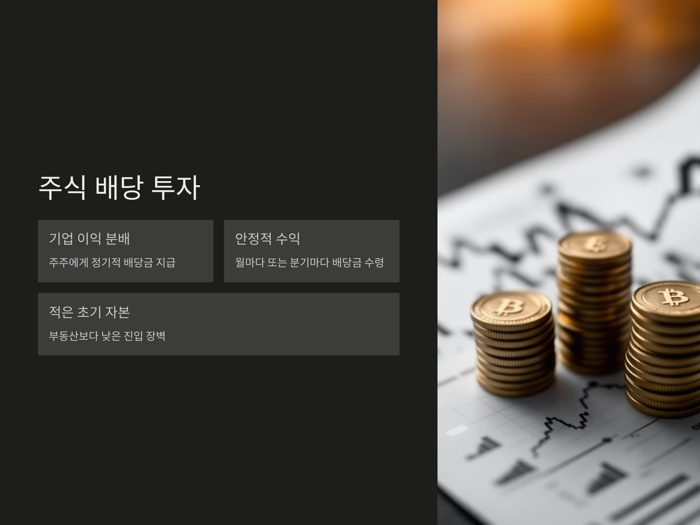 주식 배당금은 많은 사람들이 안정적인 수익을 원할 때 고려하는 방법입니다. 주식 배당 투자란, 주식회사가 주주에게 이익을 분배하는 형태로, 주식 배당금을 월마다 또는 분기마다 받는 방식입니다. 주식 배당은 일정한 수익을 제공하며, 보통 안정적인 기업의 주식을 보유하면 꾸준한 월세처럼 배당금을 받을 수 있습니다.