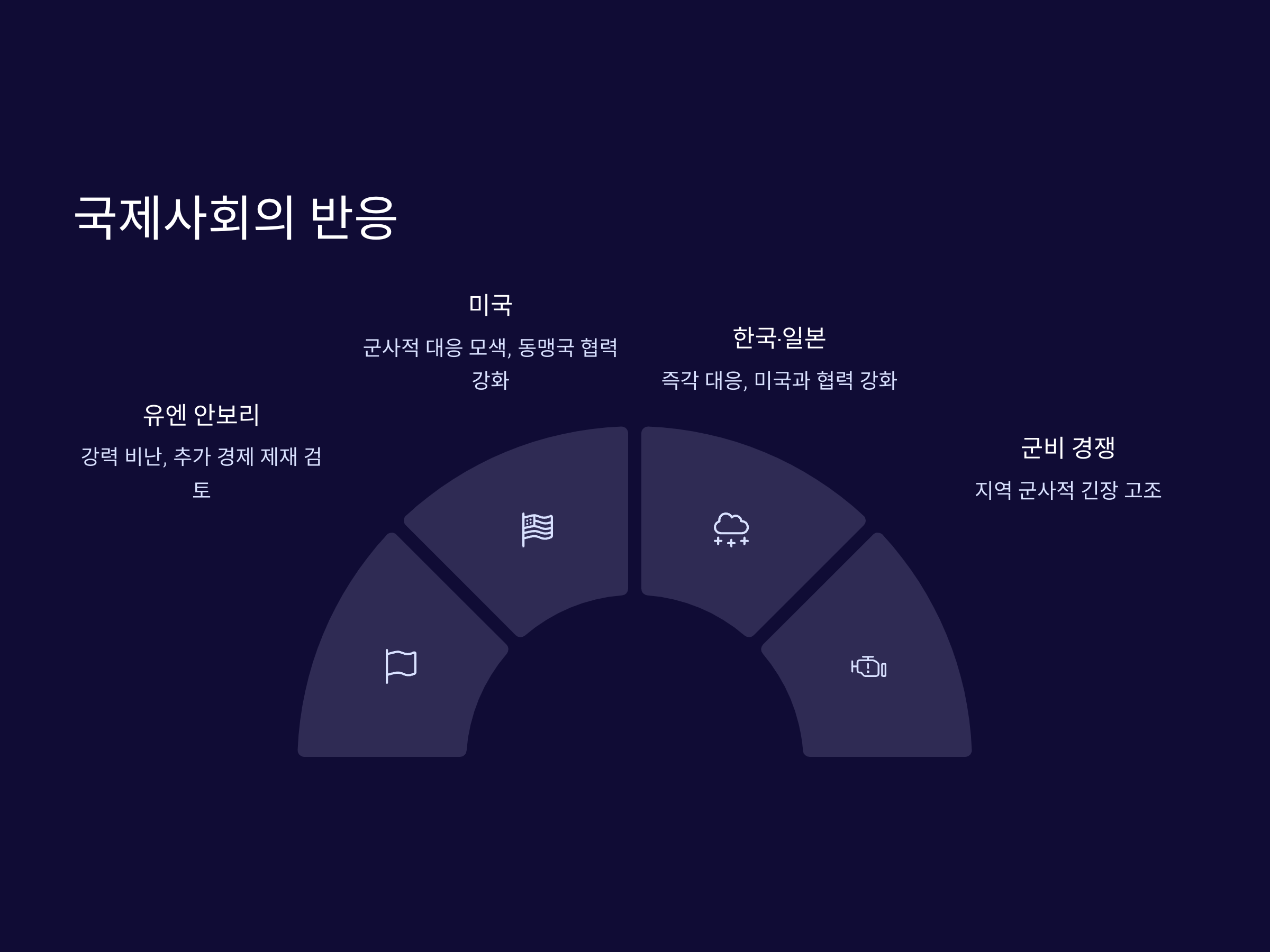 북한의 미사일 도발에 대한 대응은 국제 사회의 중요한 과제로 자리잡고 있습니다. 각국은 북한의 도발을 억제하기 위한 다양한 방법을 모색하고 있으며, 이에는 군사적 대응뿐만 아니라 외교적 압박도 포함됩니다. 유엔 안전보장이사회는 북한의 미사일 발사를 강력히 규탄하고, 북한에 대한 제재를 강화하는 방안을 논의하고 있습니다.