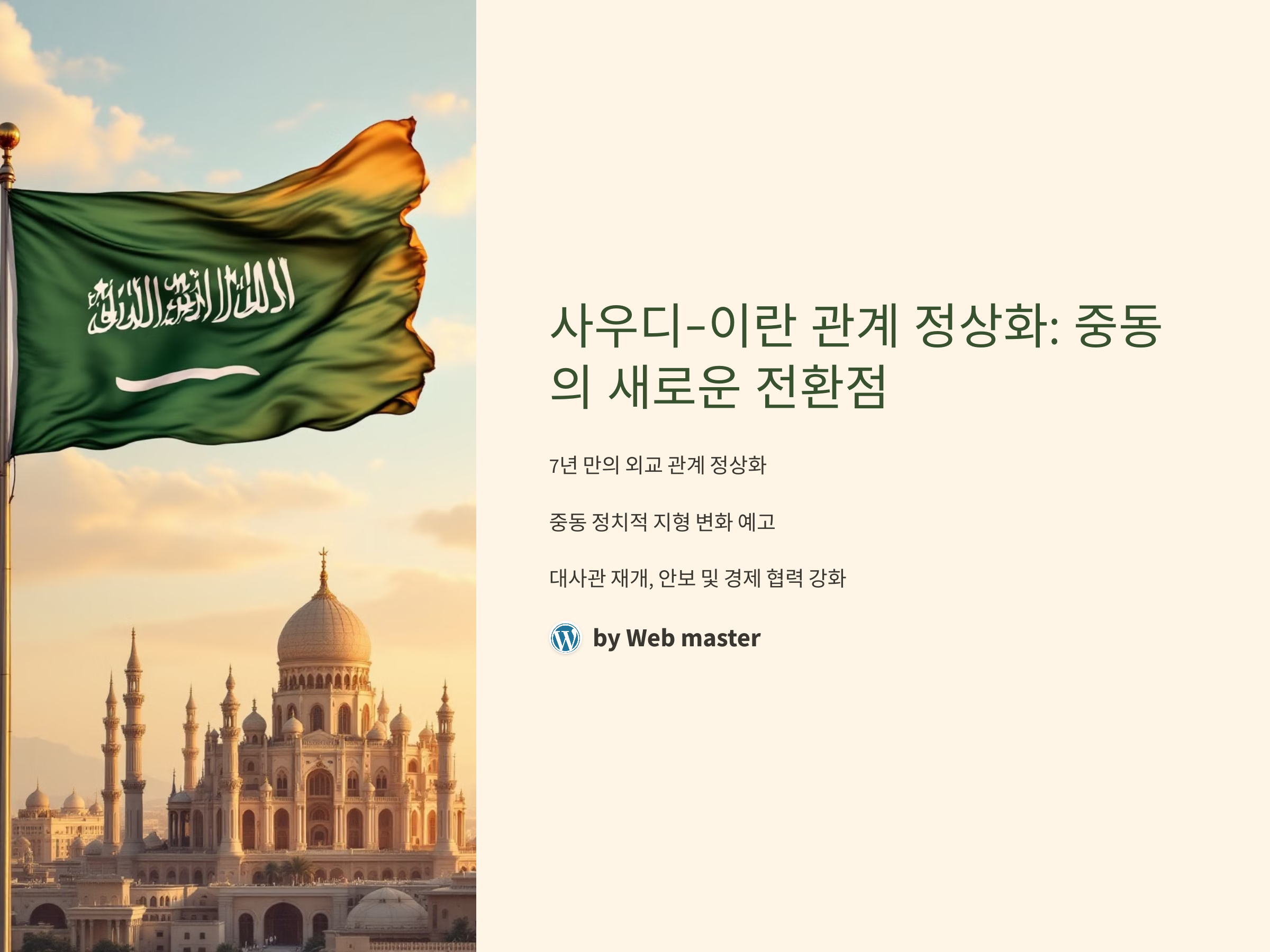 사우디-이란 관계 정상화는 단기적인 외교적 성과를 넘어서 중동 지역의 새로운 질서를 여는 중요한 계기가 될 것입니다. 이 변화가 세계 외교에 미칠 영향을 지켜보는 것은 매우 중요한 시점입니다.