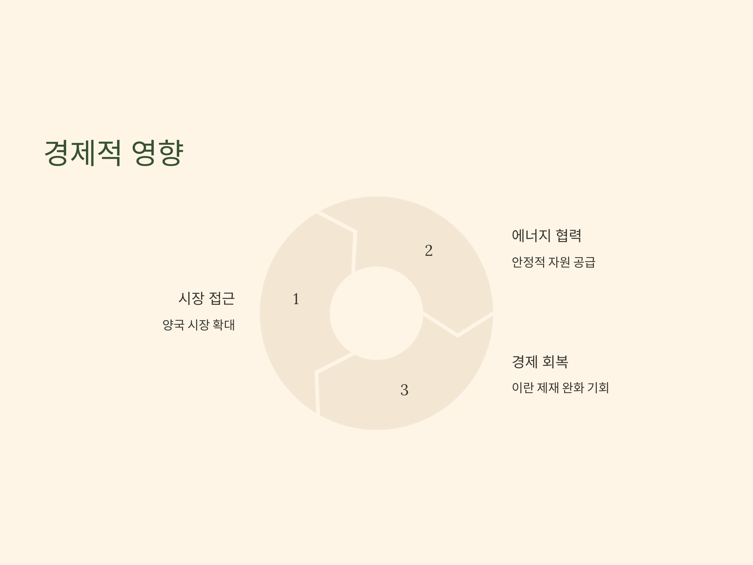 사우디-이란 관계의 정상화는 경제적인 측면에서도 중요한 변화를 예고합니다. 양국은 서로의 시장에 대한 접근을 확대하고, 특히 에너지와 무역 분야에서 협력을 강화할 수 있는 여지를 가지고 있습니다. 이란은 국제 제재에서 부분적으로 벗어나면서 경제 회복을 위한 기회를 맞이하고 있으며, 사우디는 이란과의 협력을 통해 중동 내 에너지 자원의 안정적 공급을 확보할 수 있을 것입니다【12†source】.