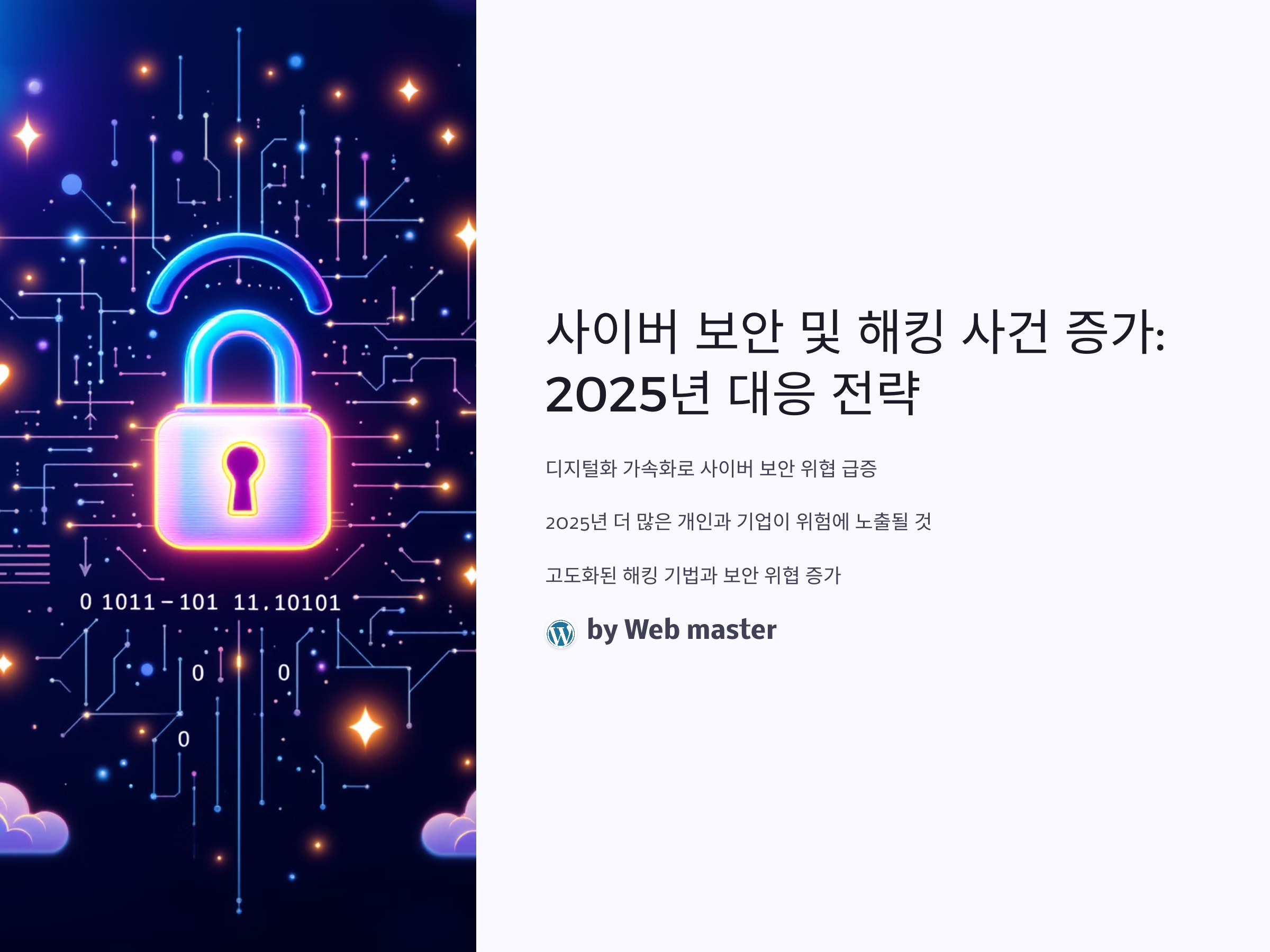 사이버 보안 위협은 날로 증가하고 있으며, 해킹 사건은 다양한 분야에서 발생하고 있습니다. 특히 랜섬웨어, 피싱 공격, DDoS(분산 서비스 거부 공격) 등 다양한 방식으로 피해를 입히고 있습니다. 2025년에는 더 많은 기업과 기관들이 사이버 공격에 취약해질 것으로 예상되며, 이에 따라 보안 시스템을 강화하는 것이 더욱 중요해질 것입니다.