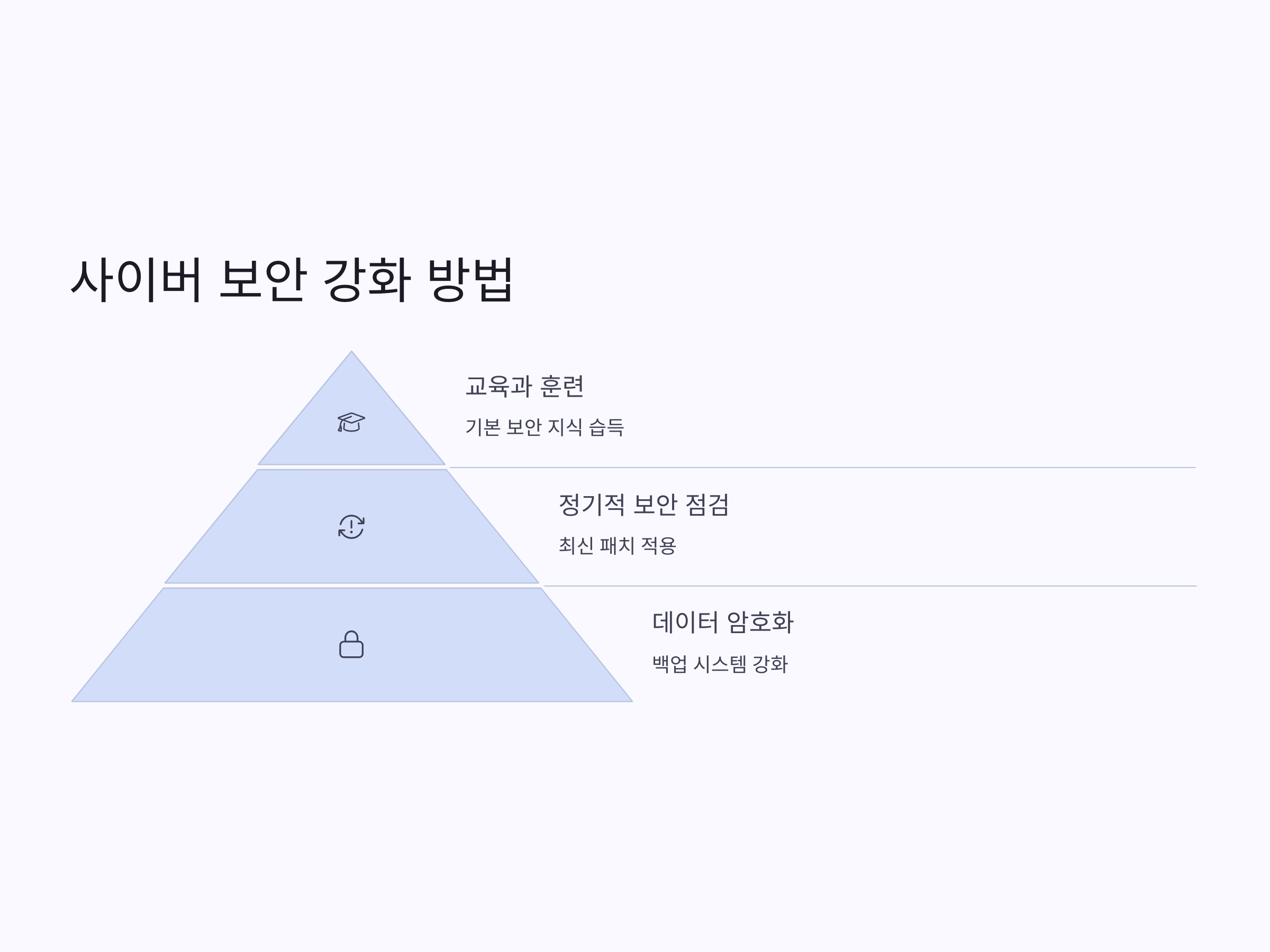 사이버 보안을 강화하기 위한 첫 번째 방법은 교육과 훈련입니다. 많은 기업들이 보안 교육을 강화하고 있지만, 여전히 많은 사용자들이 기본적인 보안 지식을 부족하게 가지고 있습니다. 비밀번호 관리, 피싱 이메일의 식별 방법, 안전한 웹사이트 사용 등의 기초적인 보안 교육이 필수적입니다.