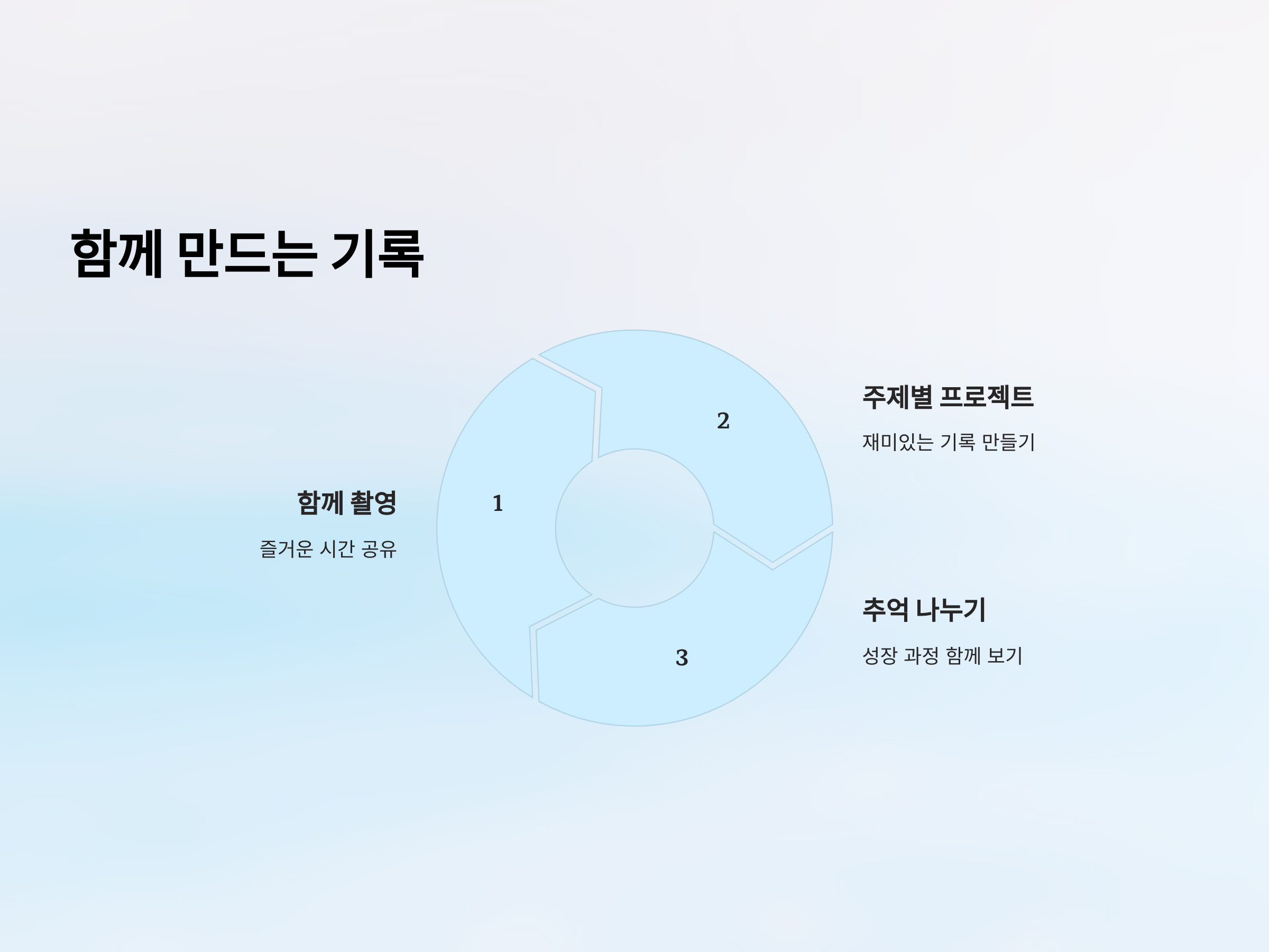 손주와 함께 주제별 촬영 프로젝트를 진행할 수도 있습니다. 예를 들어, "매일 아침의 첫 인사", "손주와 함께하는 공원 나들이", "손주가 좋아하는 장난감과 함께 찍은 사진" 등 다양한 주제로 촬영하면 재미있는 기록이 될 것입니다.