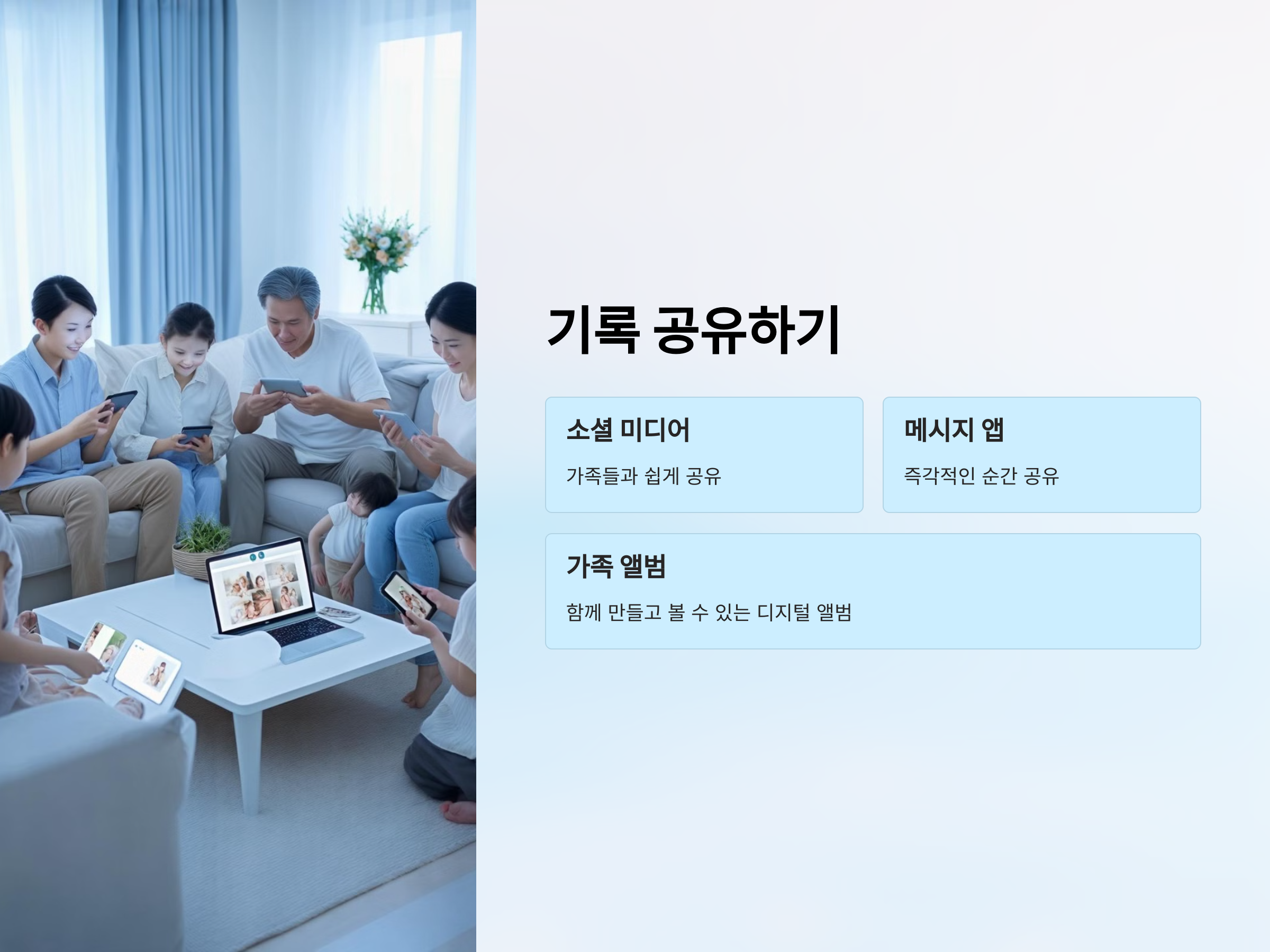 사진과 영상을 기록한 후, 이를 어떻게 가족과 친구들과 공유할지 고민될 수 있습니다. 손주 성장 기록을 나누는 방법에 대해 알아보겠습니다.