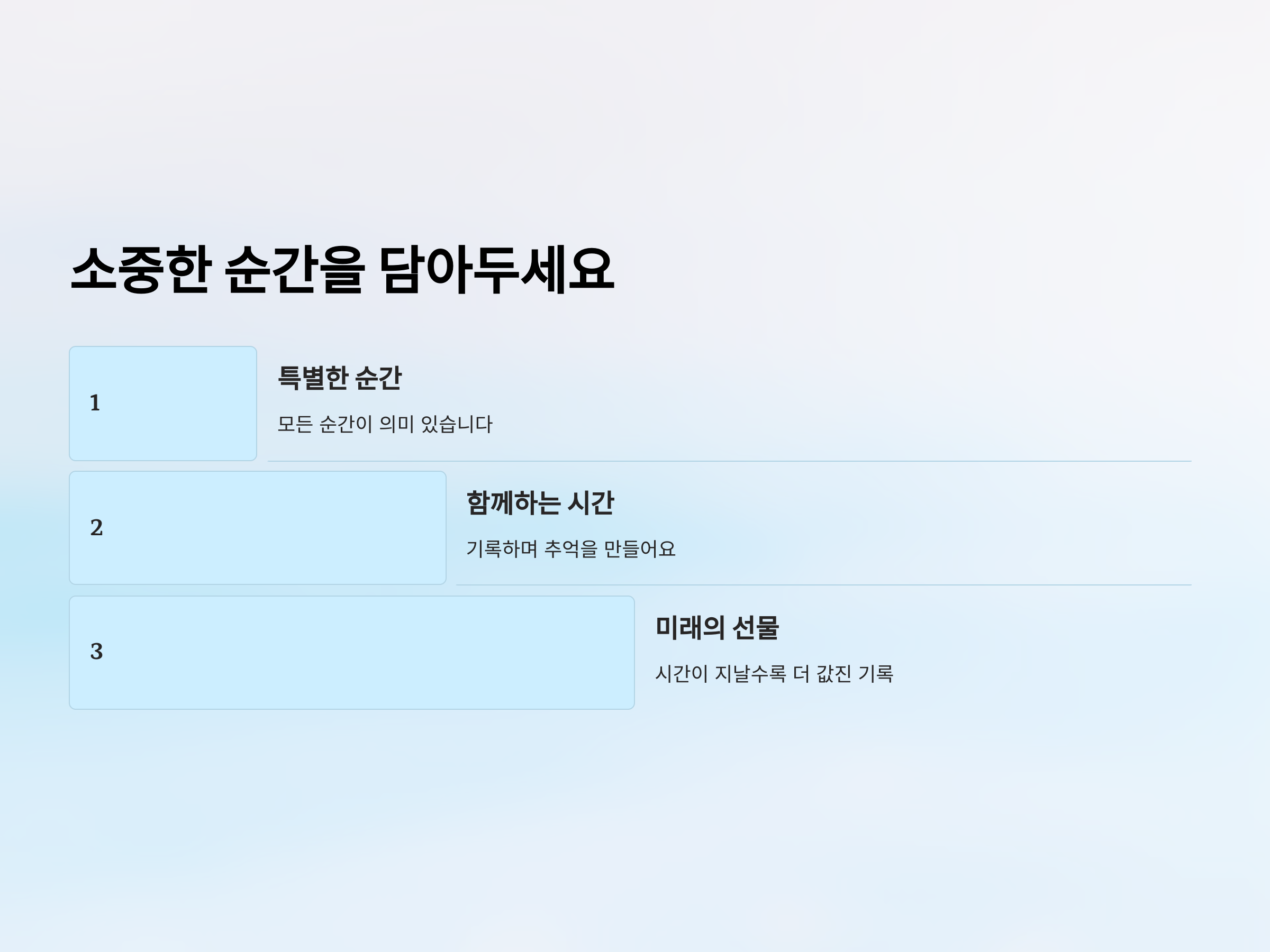 매일매일의 모습도 소중하니 가능하면 빠른 시점부터 기록을 시작하세요.