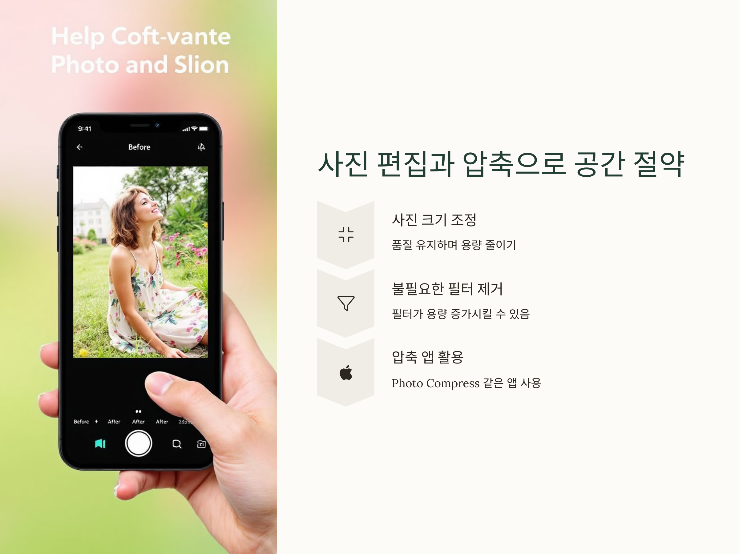 사진의 크기를 조정하거나 압축하여 저장 공간을 절약할 수 있습니다. 다양한 앱을 사용하면 사진의 품질을 유지하면서도 용량을 줄일 수 있습니다. 예를 들어, ‘Photo Compress’와 같은 앱을 사용하면 손쉽게 압축이 가능합니다.
