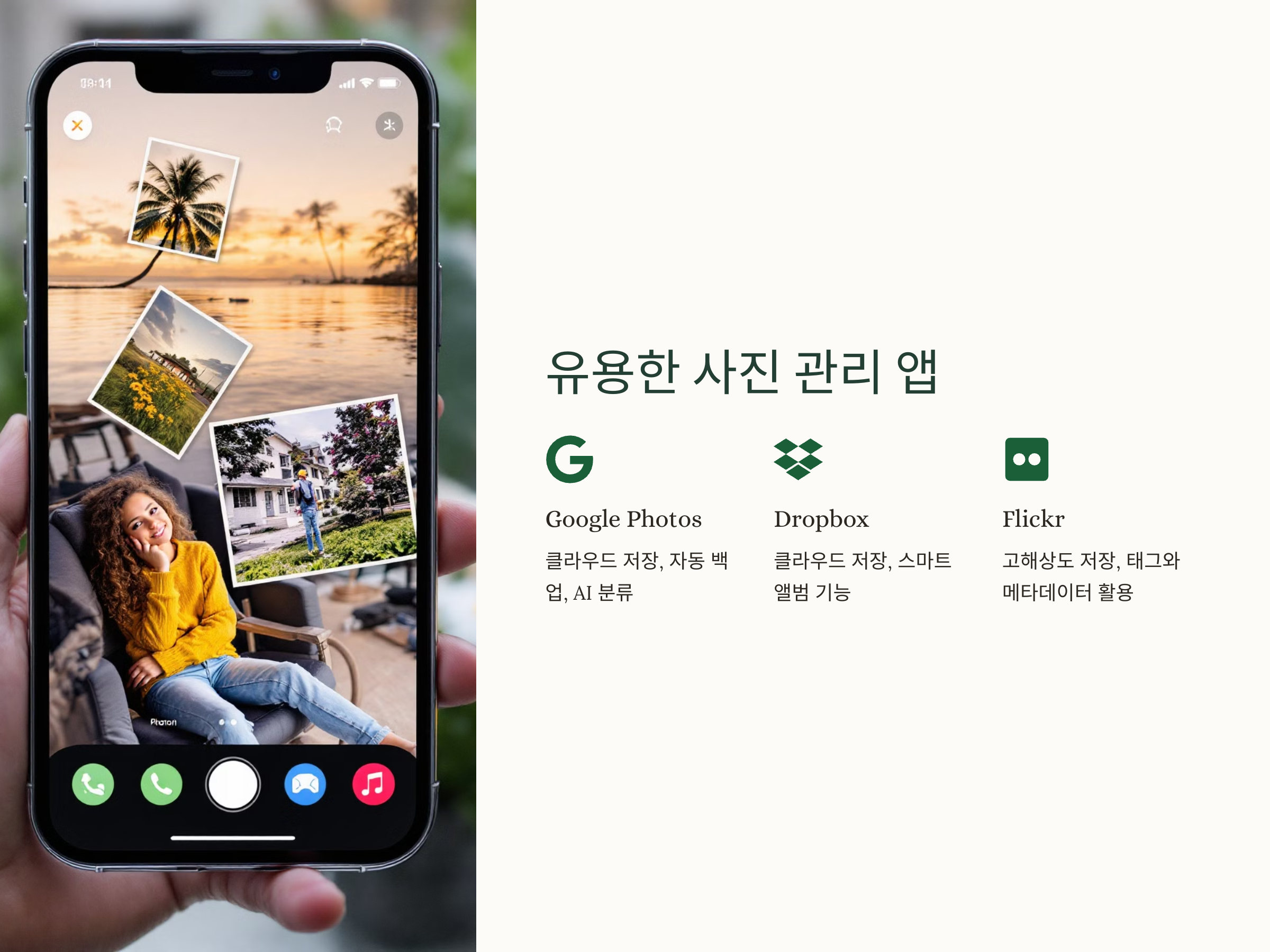 스마트폰 기본 기능 외에도, 다양한 사진 관리 앱을 활용하면 더욱 효율적으로 사진을 정리할 수 있습니다. 그 중에서 유용한 앱을 몇 가지 소개해 드리겠습니다.