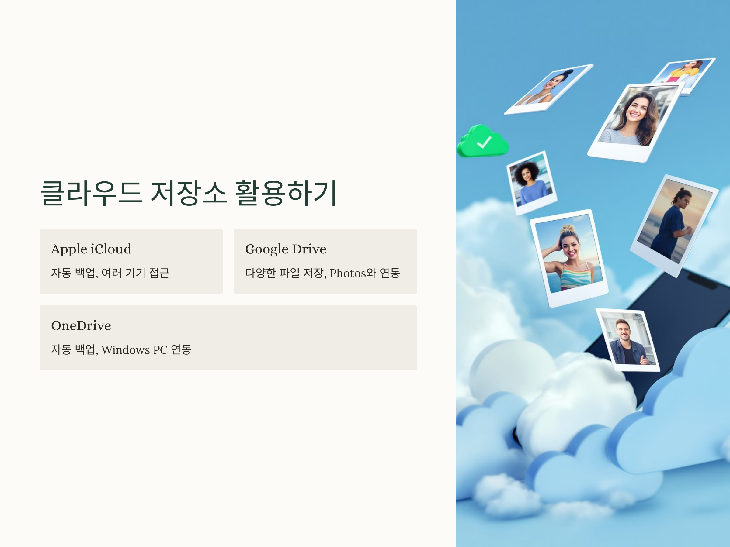 사진을 안전하게 보관하고 언제든지 접근할 수 있도록 클라우드 서비스를 활용하는 것도 좋은 방법입니다. 클라우드 서비스는 스마트폰에서 찍은 사진을 자동으로 백업하고, 다양한 디바이스에서 쉽게 접근할 수 있습니다. 클라우드 저장소를 활용하면 스마트폰의 저장공간을 절약할 수 있고, 사진을 잃어버릴 걱정도 덜 수 있습니다.