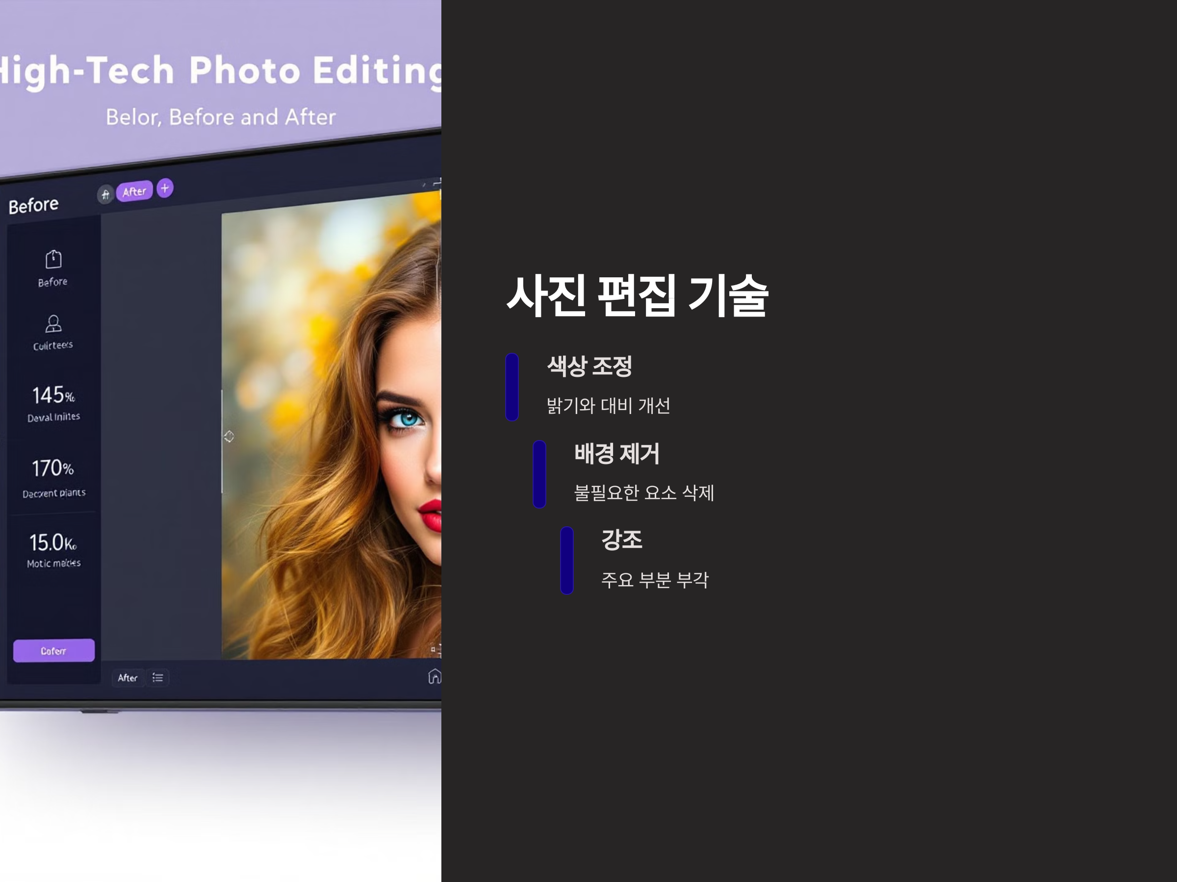 촬영 후에는 사진 편집 소프트웨어(예: Adobe Lightroom, Photoshop)를 사용하여 색상, 밝기, 대비 등을 조정할 수 있습니다. 때로는 불필요한 배경을 제거하거나, 원하는 부분을 강조하는 작업이 필요합니다. 사진 편집은 사진의 품질을 높이고, 상업적 가치를 극대화하는 중요한 과정입니다.