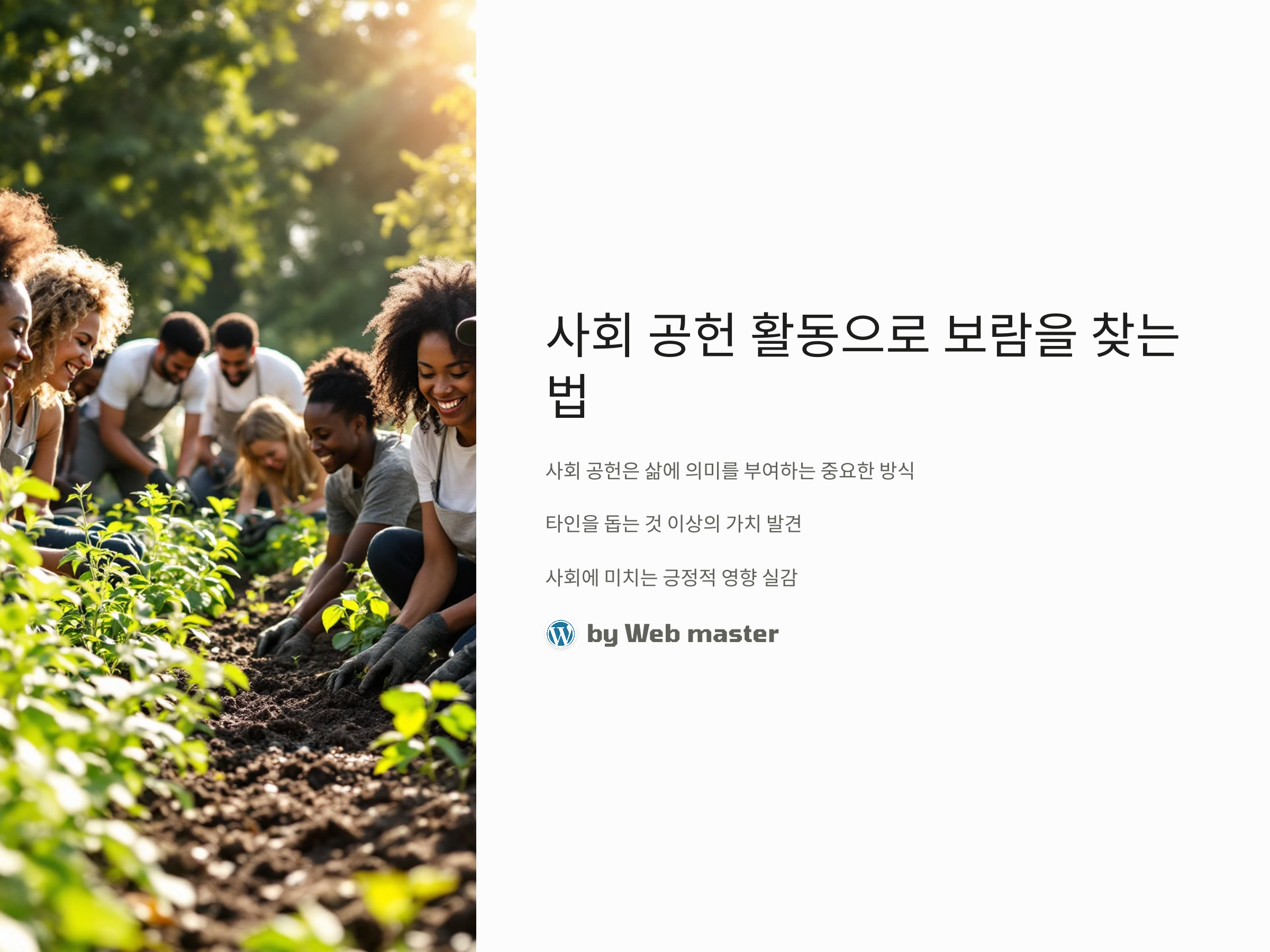 사회 공헌 활동은 우리 개인의 삶에 의미를 부여하는 중요한 방식 중 하나입니다. 이 활동을 통해 우리는 단순히 다른 사람을 돕는 것 이상의 가치를 발견할 수 있으며, 자신이 사회에 미치는 긍정적인 영향을 실감할 수 있습니다. 이번 글에서는 사회 공헌 활동을 통해 보람을 찾는 방법과 그 과정에서 얻을 수 있는 성장과 성취감을 다루어 보겠습니다.