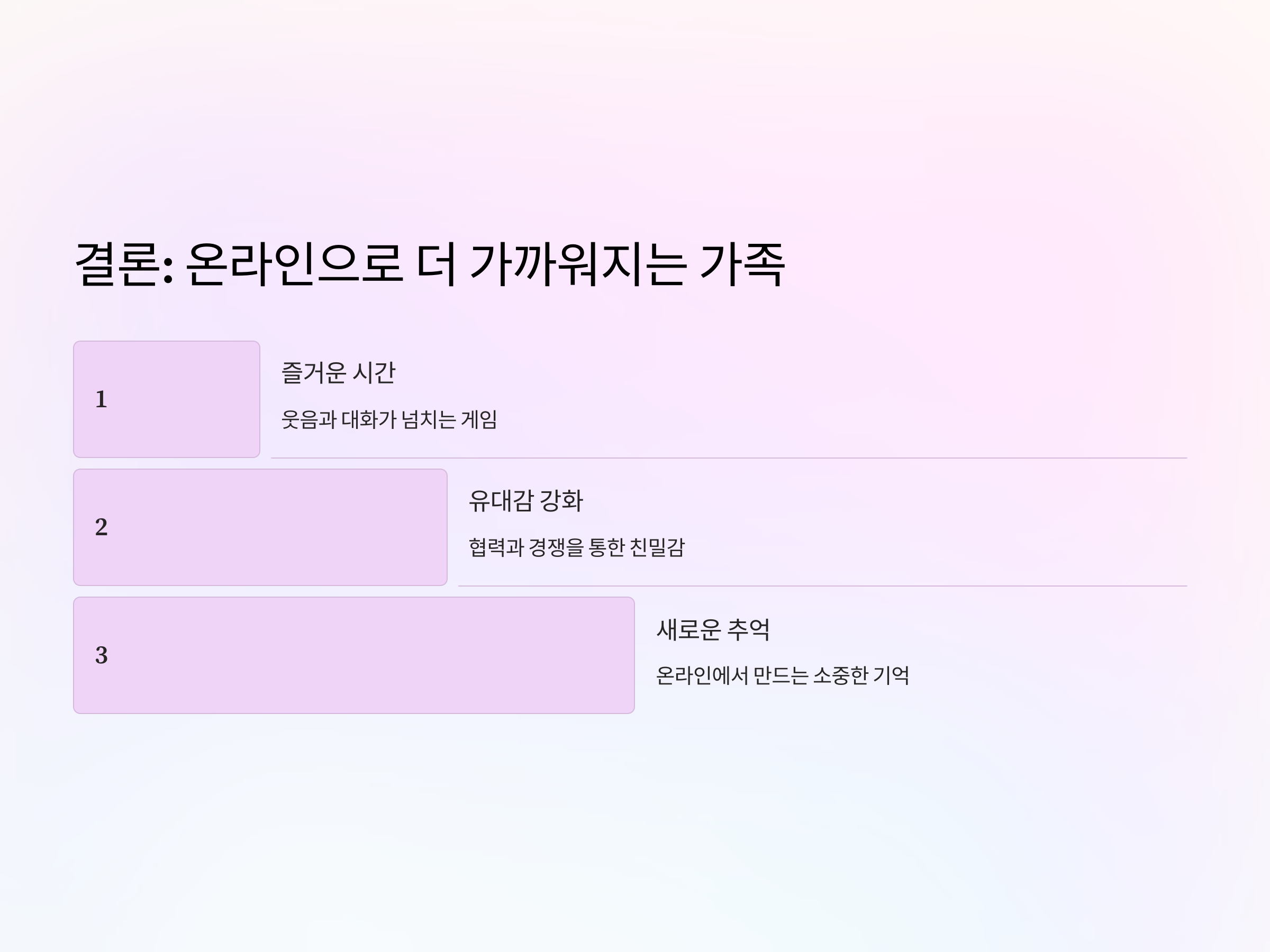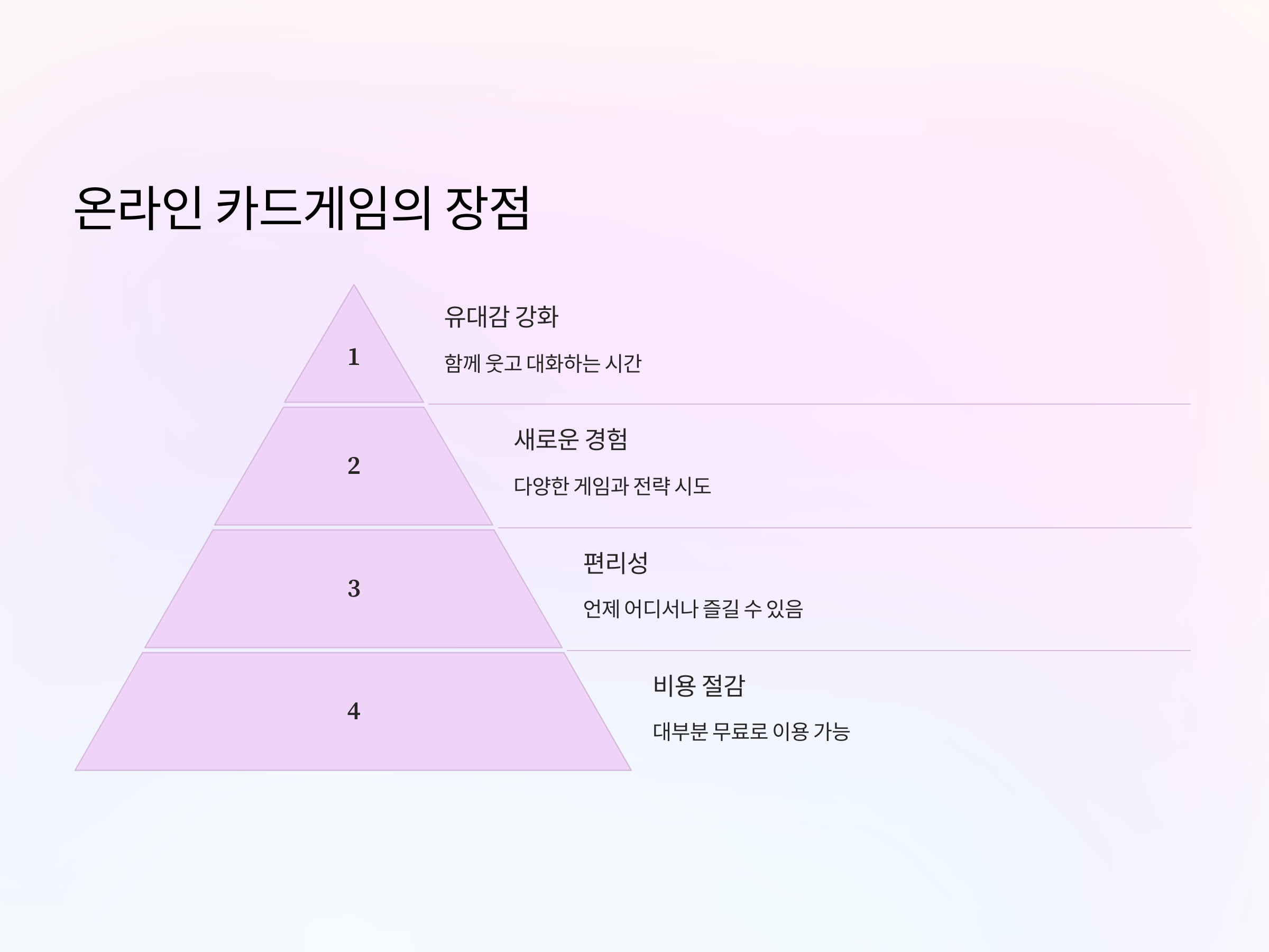 온라인 카드게임을 할 때 가장 중요한 점은 승패를 떠나 즐거운 시간을 보내는 것입니다. 서로 친근하게 대화를 나누고, 웃음을 주고받으며 게임을 하는 것이 더 중요한 포인트입니다. 특히 자녀들이 있을 경우, 승부보다 협력과 배려를 중시하는 분위기를 만드는 것이 좋습니다.