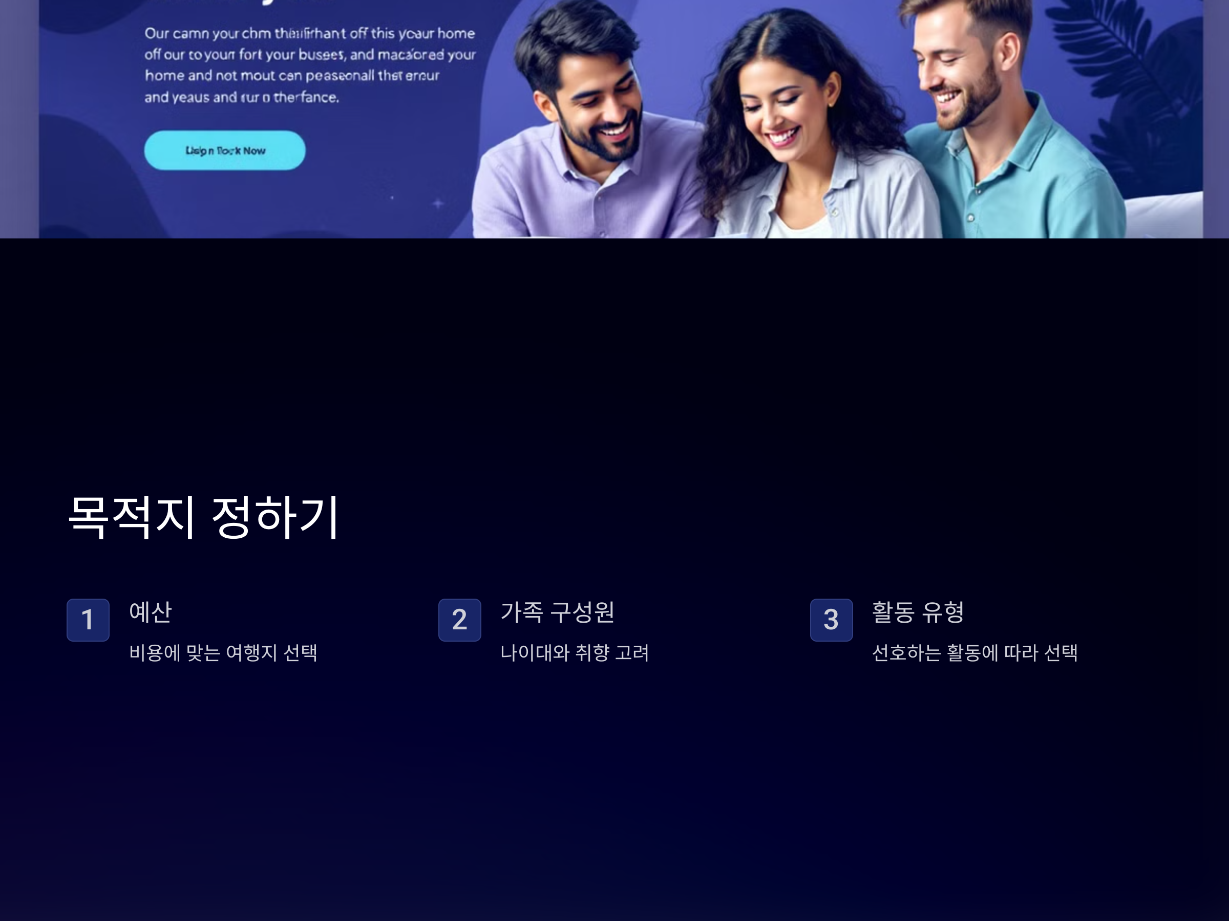 - 가족 구성원: 가족의 나이대나 취향을 고려해 최적의 여행지를 선택하세요. 어린 자녀와 함께할 경우 안전한 여행지를 선택하는 것이 중요합니다.