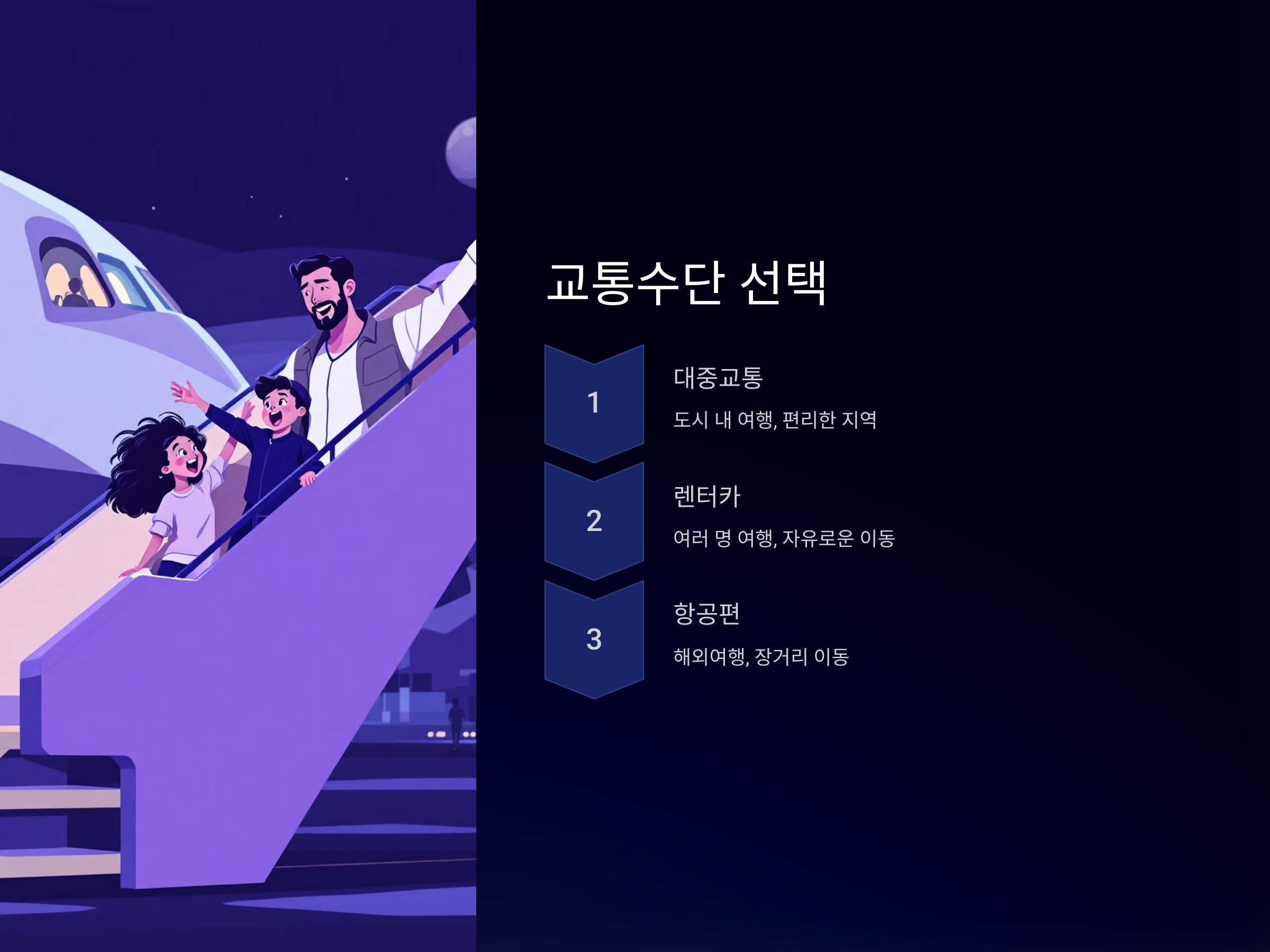 여행의 교통수단과 숙소는 계획의 핵심적인 부분입니다. 특히 가족 여행에서는 한 명이라도 빠지지 않도록 예약을 확정해두는 것이 중요합니다. 교통수단은 대중교통, 렌터카, 항공편 등 여러 가지 옵션이 있으며, 숙소도 가족 규모에 맞게 선택해야 합니다.
