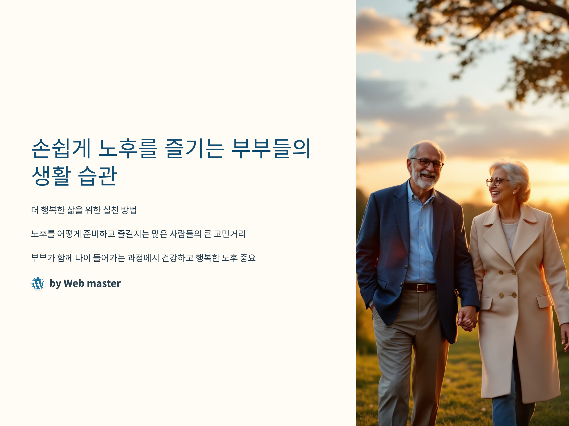 노후를 어떻게 준비하고 즐길지는 많은 사람들의 큰 고민거리입니다. 특히 부부가 함께 나이를 들어가는 과정에서 서로 다른 생활 습관과 관심사를 조정하며 건강하고 행복한 노후를 보내는 것은 더욱 중요해집니다. 다행히도 노후를 손쉽게 즐길 수 있는 몇 가지 생활 습관을 미리 들여놓는다면, 더욱 행복한 삶을 누릴 수 있습니다.