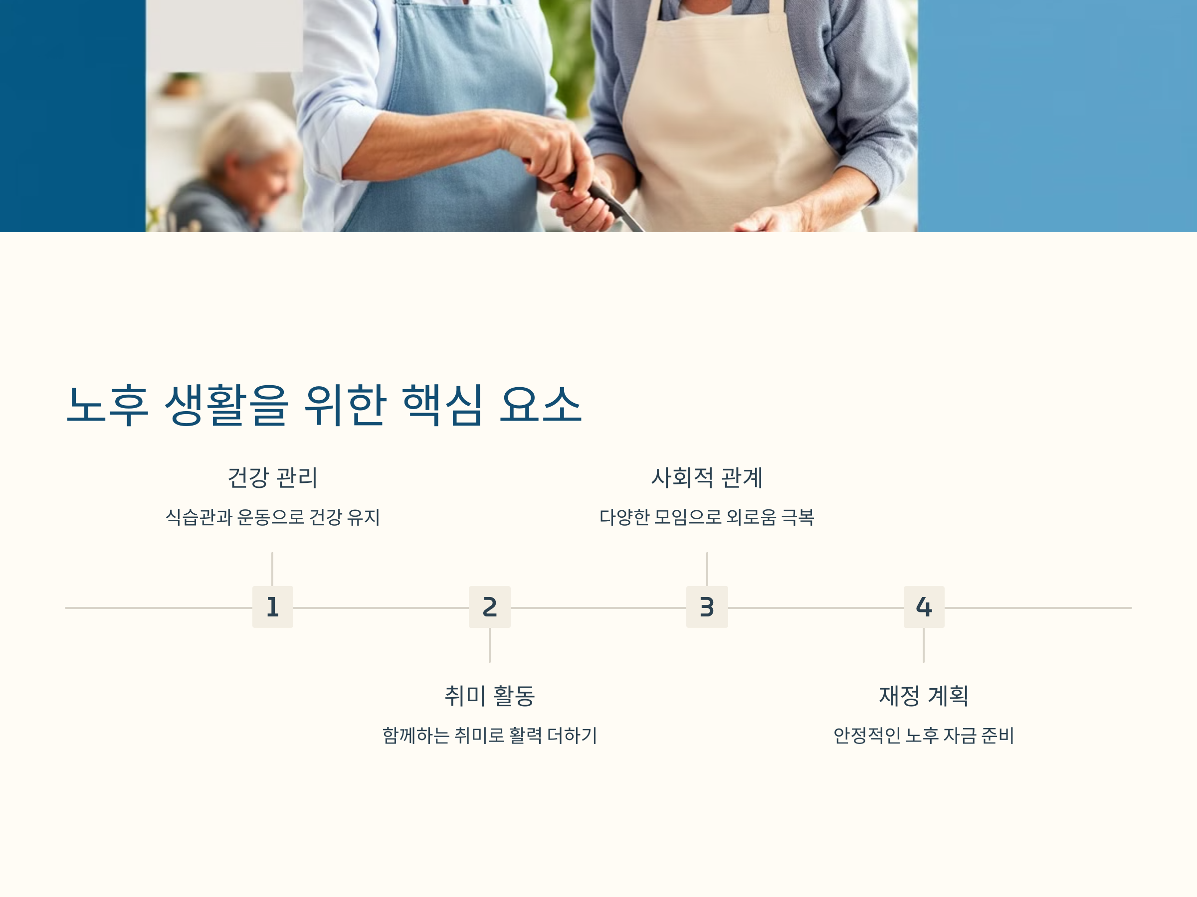 노후를 즐기기 위해서는 재정 관리가 매우 중요합니다. 부부가 함께 재정 계획을 세우고, 필요한 자금을 미리 준비하는 것이 필요합니다. 잘 준비된 재정은 노후의 안정적인 생활을 보장해줍니다.