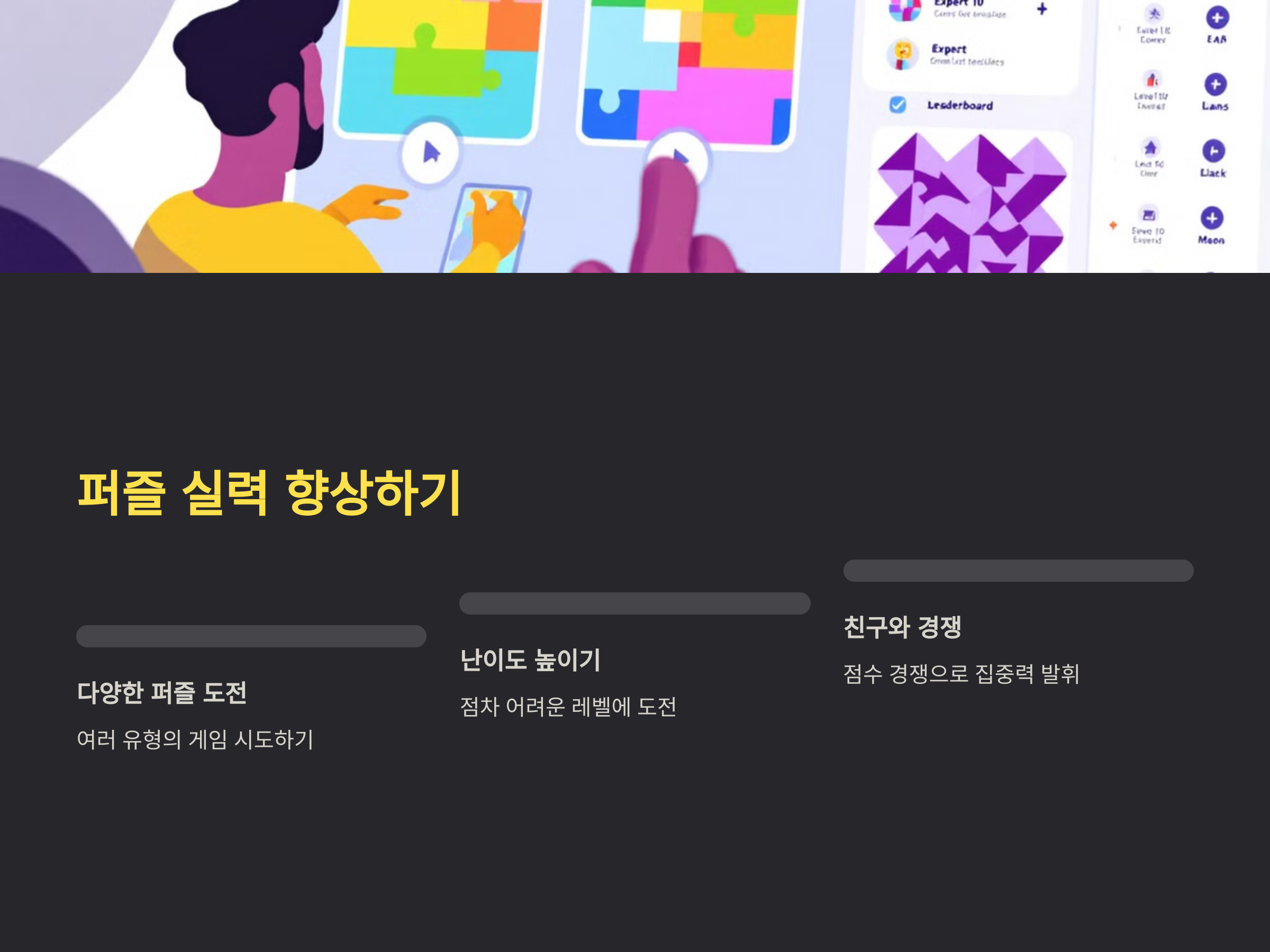퍼즐을 많이 풀수록 실력이 향상되고, 문제를 해결하는 능력이 강화됩니다.