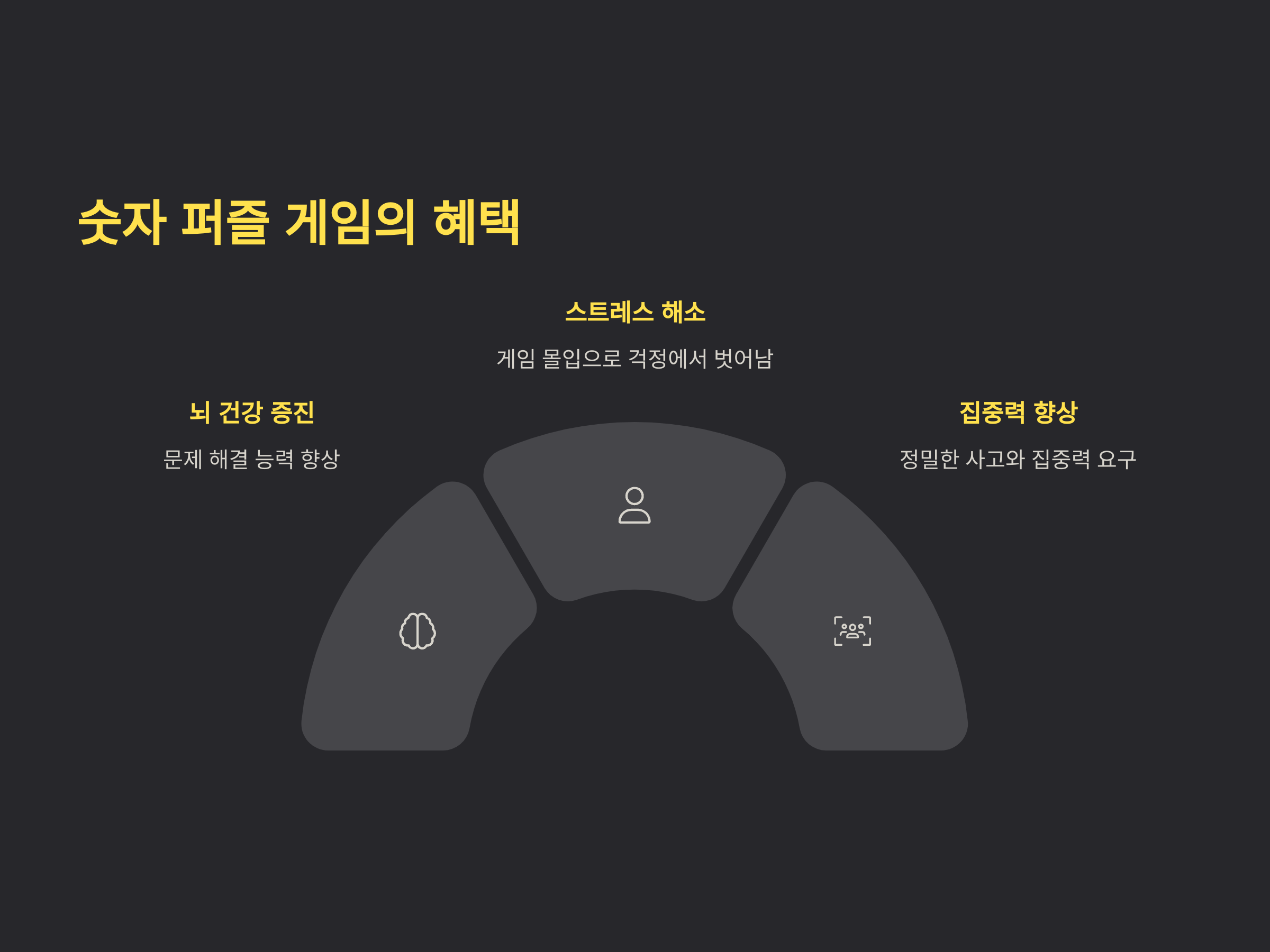 - 집중력 향상: 숫자 퍼즐 게임은 정밀한 사고와 집중을 요구합니다. 이를 통해 집중력을 키울 수 있으며, 일상에서도 더 나은 집중력을 발휘할 수 있게 됩니다.