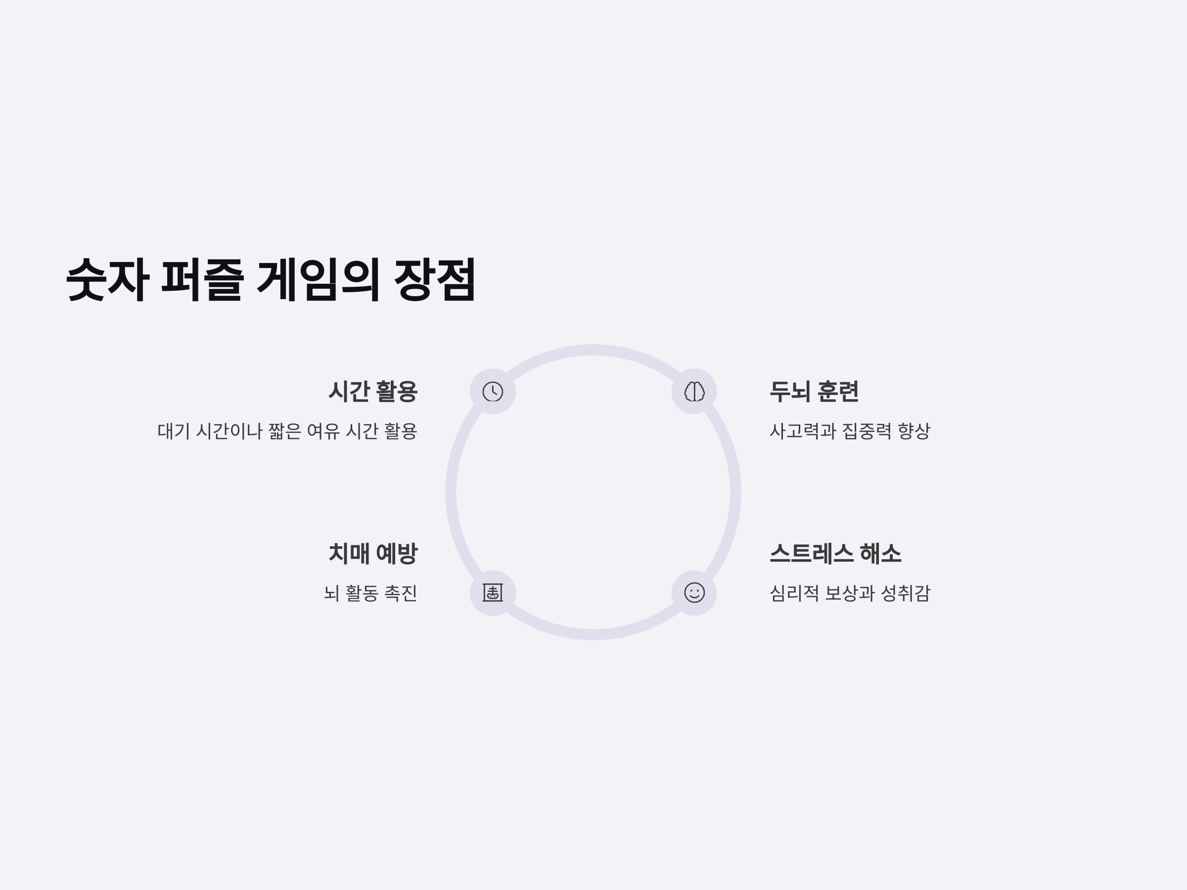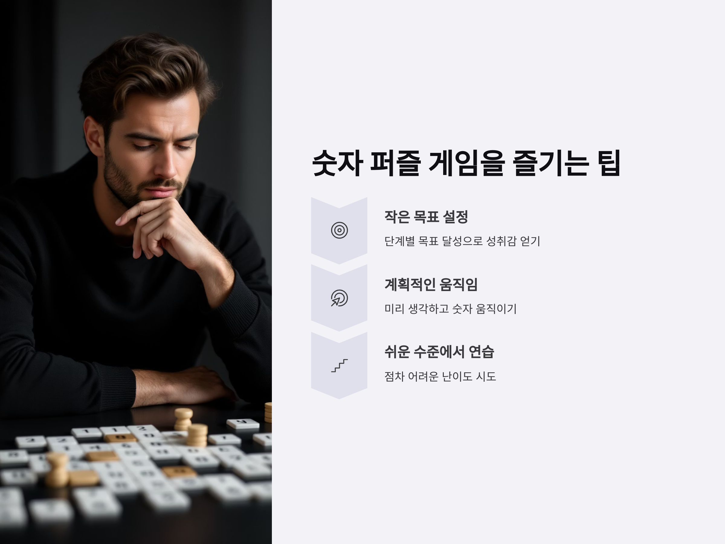 모바일에서 숫자 퍼즐 게임을 즐기는 가장 큰 장점은 언제 어디서나 즐길 수 있다는 점입니다. 대기 시간이나 짧은 여유 시간 동안 스마트폰을 꺼내어 숫자 퍼즐을 푸는 것이 가능합니다. 또한, 숫자 퍼즐은 심리적 보상과 성취감을 주기 때문에 스트레스 해소에도 효과적입니다.
