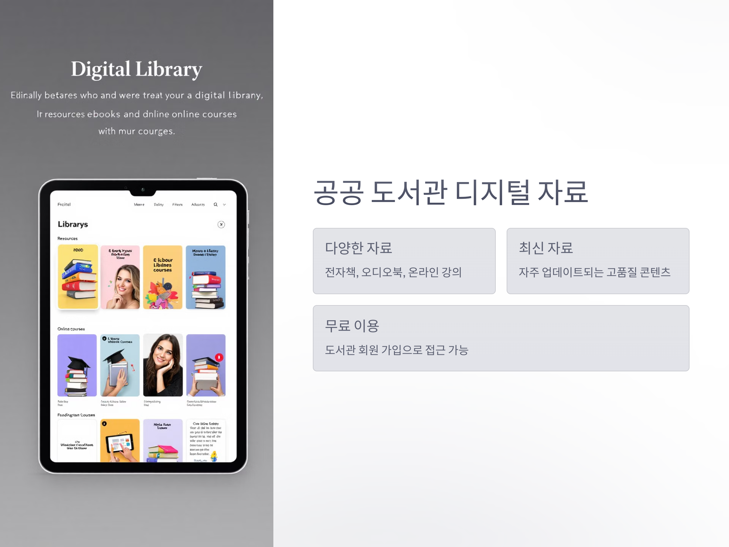 많은 공공 도서관에서는 무료로 온라인 학습 자료를 제공합니다. 전자책, 오디오북, 그리고 온라인 강의 자료들이 구비되어 있으며, 이는 지역 주민들만을 위한 자원으로 제공되기 때문에 이용이 제한적일 수 있지만, 해당 도서관에 회원 가입을 통해 누구나 무료로 이용할 수 있습니다.