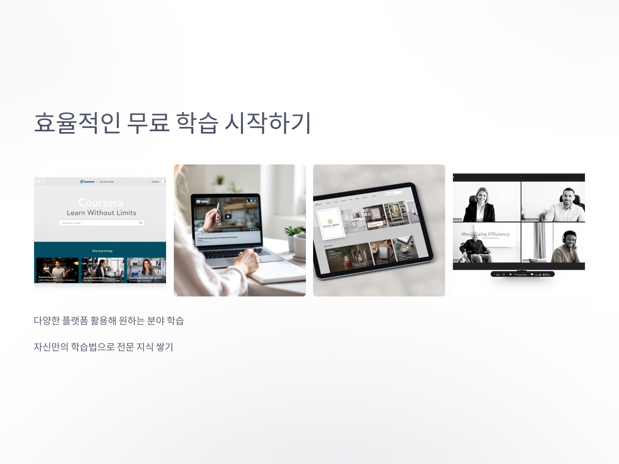 이제는 어디서든 강의를 듣고 공부할 수 있는 시대가 되었습니다. 그만큼, 유용한 자료를 찾는 방법도 다양합니다. 자신에게 맞는 방법을 선택하고, 꾸준히 학습하면서 더욱 전문적인 지식을 쌓아가세요.