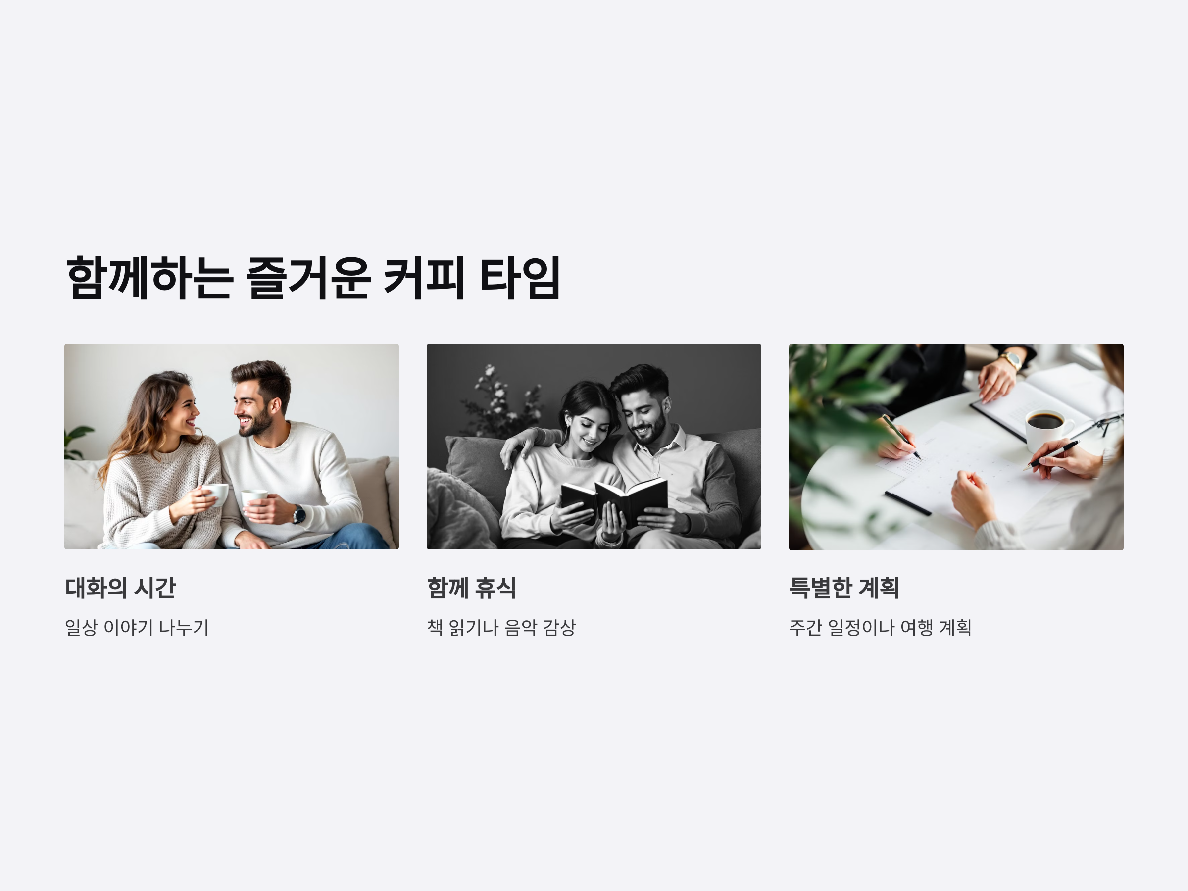 특히, 커피 한 잔을 함께 나누며 서로의 일상 이야기를 나누는 것만으로도 커피 이상의 의미가 됩니다. 일상에서 벗어나 특별한 시간을 보내고 싶다면, 일주일에 한 번 정도는 배우자와 함께하는 홈카페 타임을 가지세요. 간단한 커피나 차 한 잔이지만, 그 시간이 서로를 더 가까이 느낄 수 있게 해 줄 것입니다.