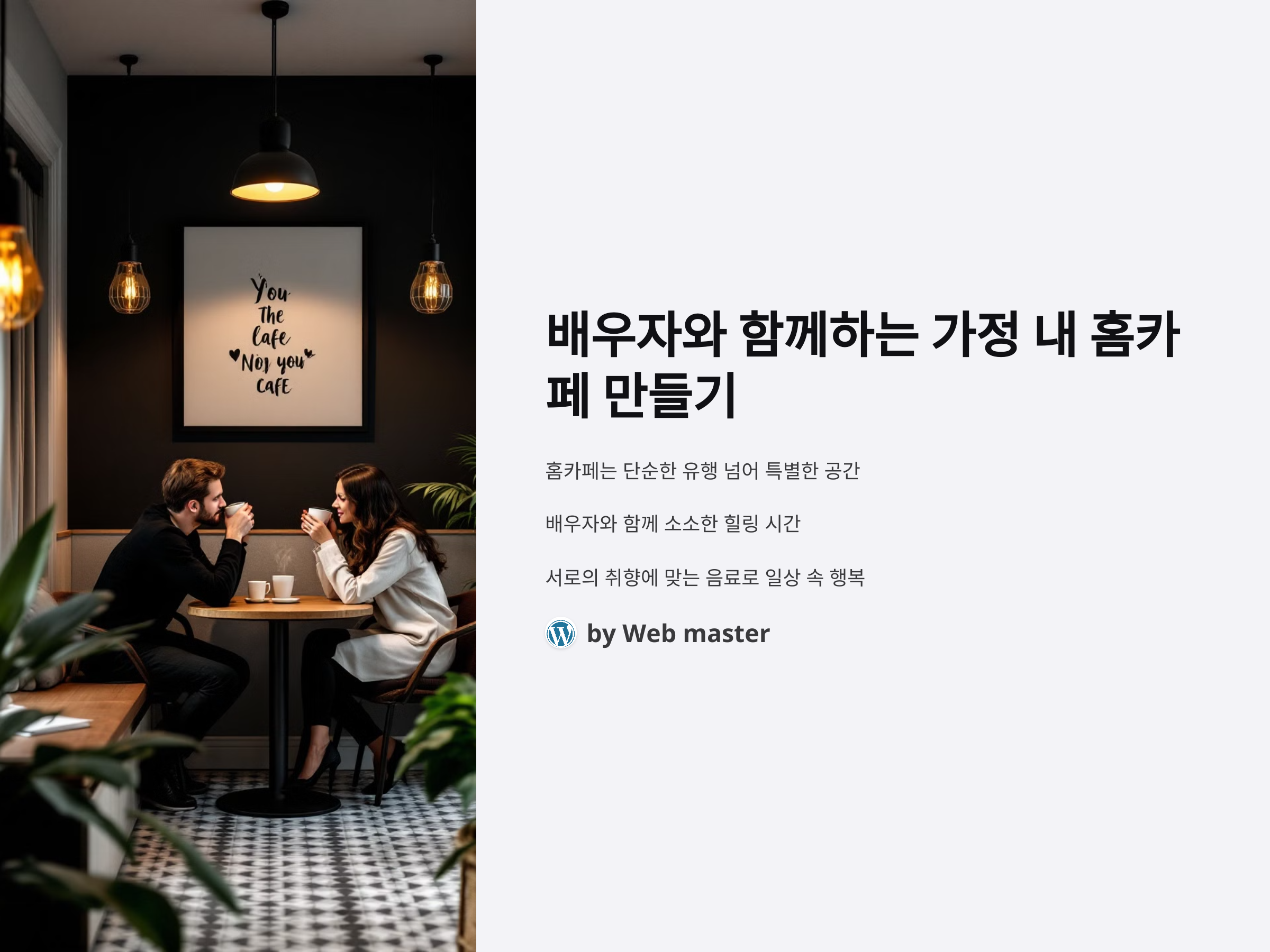이제, 본격적으로 배우자와 함께 가정 내 홈카페를 만들어보세요. 필요한 도구를 준비하고, 취향을 나누며, 함께하는 시간이 더욱 즐거운 홈카페를 경험할 수 있을 것입니다. 또한, 홈카페에서의 시간은 매일 반복되는 일상 속에서 큰 행복을 선사할 것입니