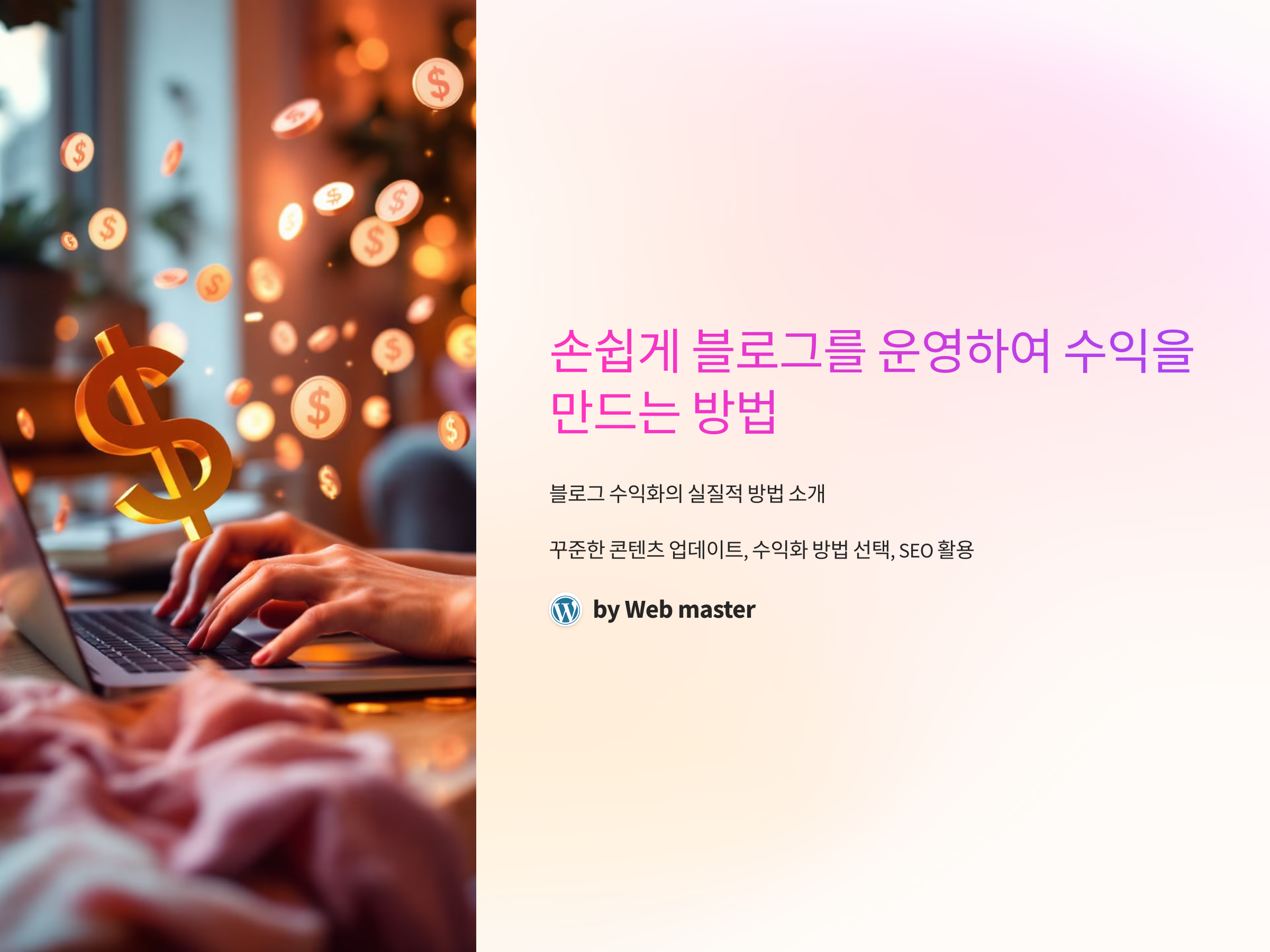 블로그 운영을 통해 수익을 얻으려면 몇 가지 중요한 요소들이 있습니다. 첫째, 꾸준한 콘텐츠 업데이트와 최적화가 필수적입니다. 둘째, 수익화 방법을 잘 선택해야 합니다. 그리고 마지막으로, SEO를 잘 활용하여 블로그의 가시성을 높여야 합니다. 이 포스팅을 통해 블로그 수익화의 실질적인 방법들을 알아보겠습니다.