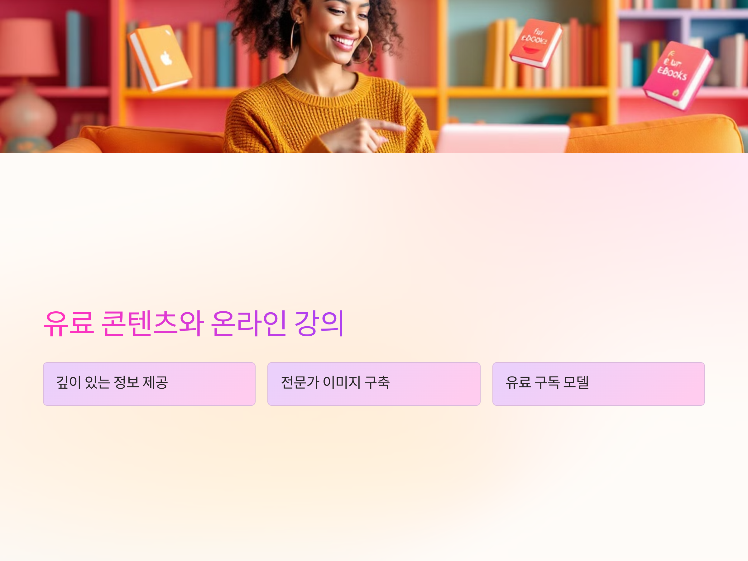블로그 수익화를 더욱 강화하려면, 유료 콘텐츠나 온라인 강의를 제공하는 방법도 고려할 수 있습니다. 예를 들어, 블로그에서 특정 주제에 대해 깊이 있는 정보를 제공하는 유료 콘텐츠를 만들어 판매하거나, 온라인 강의를 개설하여 수익을 얻을 수 있습니다. 이러한 유료 콘텐츠나 강의는 독자들에게 유용한 정보를 제공하는 동시에, 자신만의 전문가 이미지를 구축하는 데에도 도움이 됩니다.