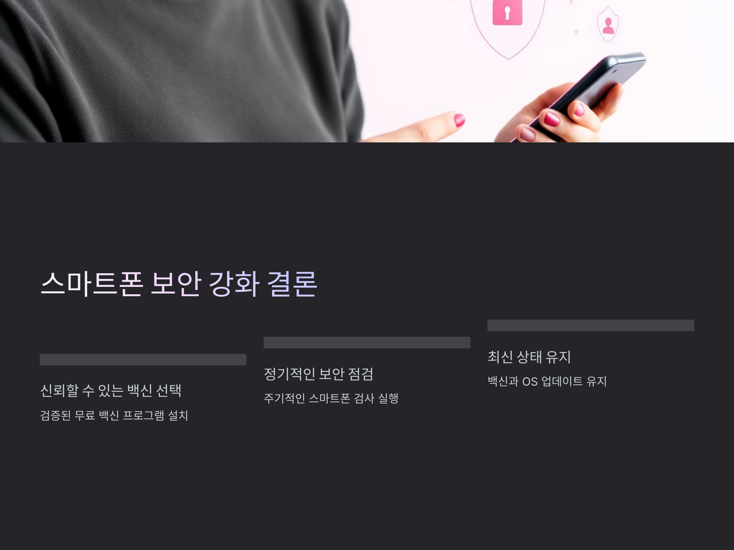 스마트폰에 백신 프로그램을 설치하기 전에, 먼저 스마트폰 자체의 보안 점검을 해야 합니다. 안드로이드와 iOS 각각에 대한 보안 설정을 살펴보겠습니다.