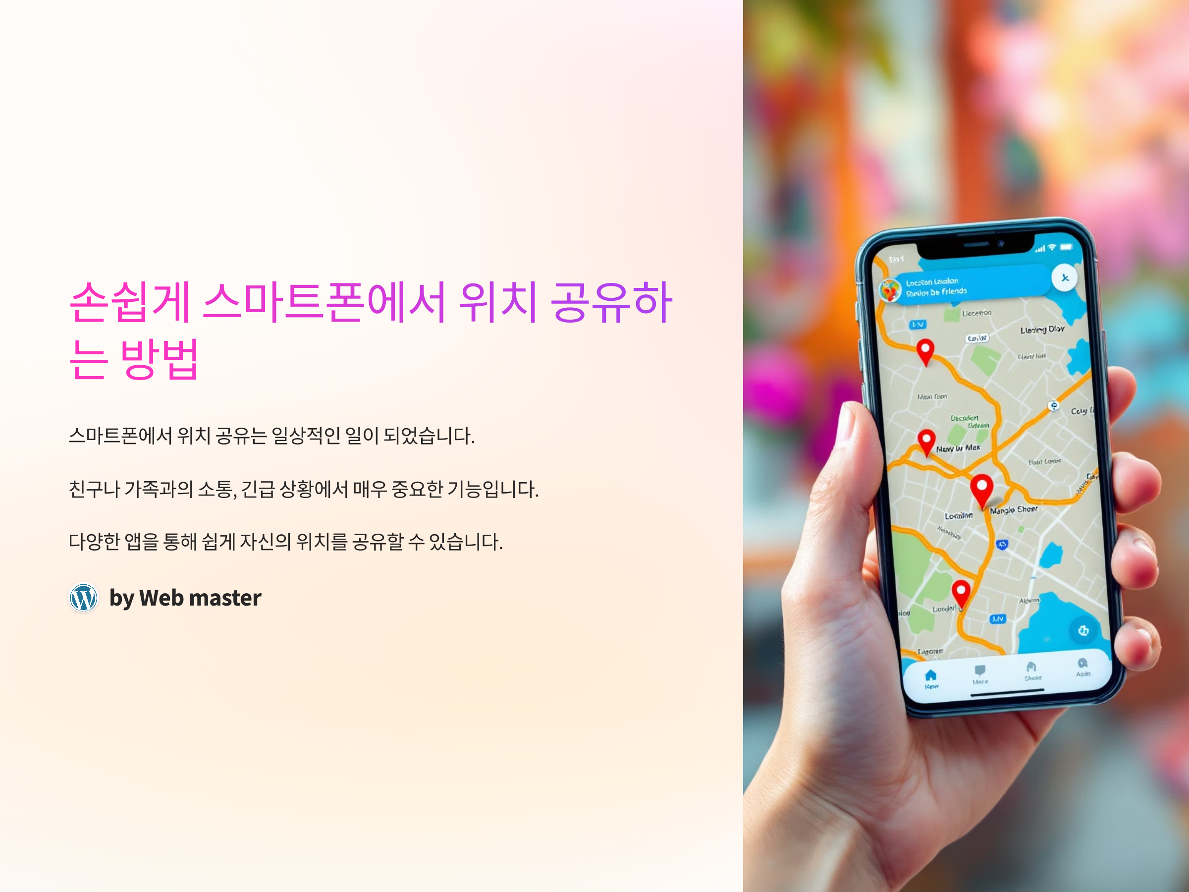 스마트폰에서 위치 공유는 이제 일상적인 일이 되었으며, 친구나 가족과의 소통, 혹은 긴급 상황에서의 위치 공유는 매우 중요한 기능입니다. 다양한 앱을 통해 쉽게 자신의 위치를 공유할 수 있으며, 이 글에서는 스마트폰에서 위치를 손쉽게 공유하는 방법을 소개하고, 각기 다른 앱과 기능을 통해 어떻게 효율적으로 위치를 전달할 수 있는지 살펴보겠습니다.