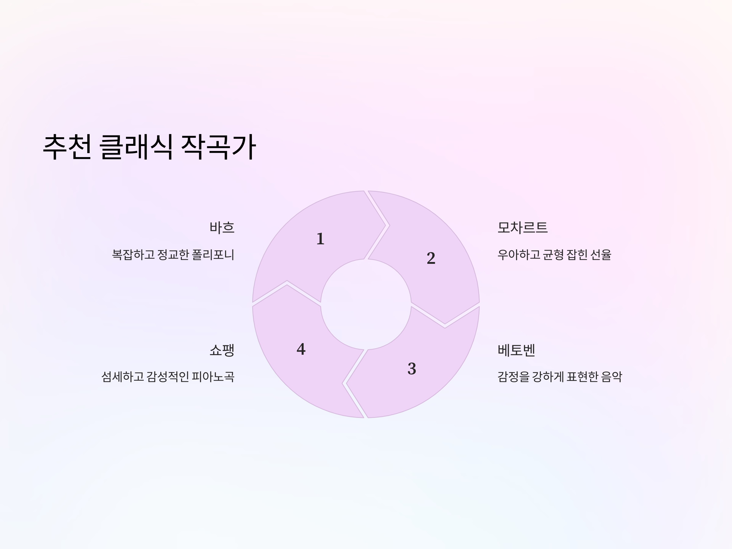 클래식 음악의 매력은 곡의 구성과 작곡가의 의도에서 비롯됩니다. 특정 작곡가의 스타일과 그들이 작곡한 시대적인 배경을 알면, 음악을 더 잘 이해하고 감상할 수 있습니다. 예를 들어, 바흐의 음악은 복잡하고 정교한 폴리포니를 특징으로 하고, 베토벤은 감정을 강하게 표현한 음악을 만듭니다.