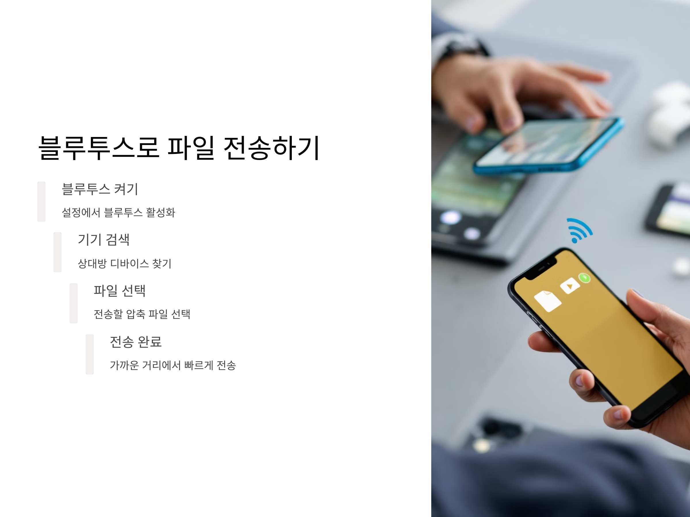 Bluetooth를 이용한 파일 전송은 압축된 파일을 보내는 데에 유용하게 사용할 수 있습니다. 특히, 이메일이나 클라우드 서비스가 접근이 어려운 상황에서는 Bluetooth를 통해 손쉽게 파일을 전송할 수 있습니다.