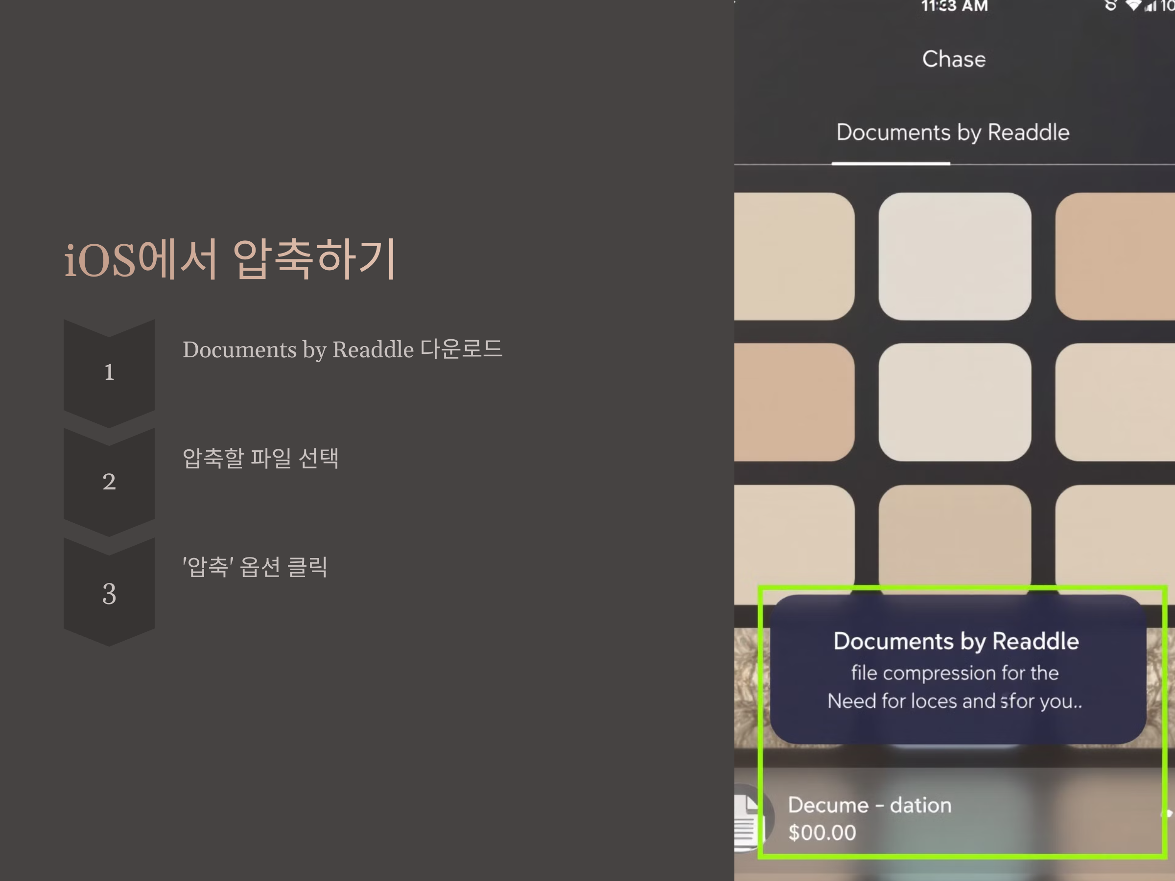 - Documents by Readdle 앱을 다운로드하고, 압축할 파일을 선택합니다.