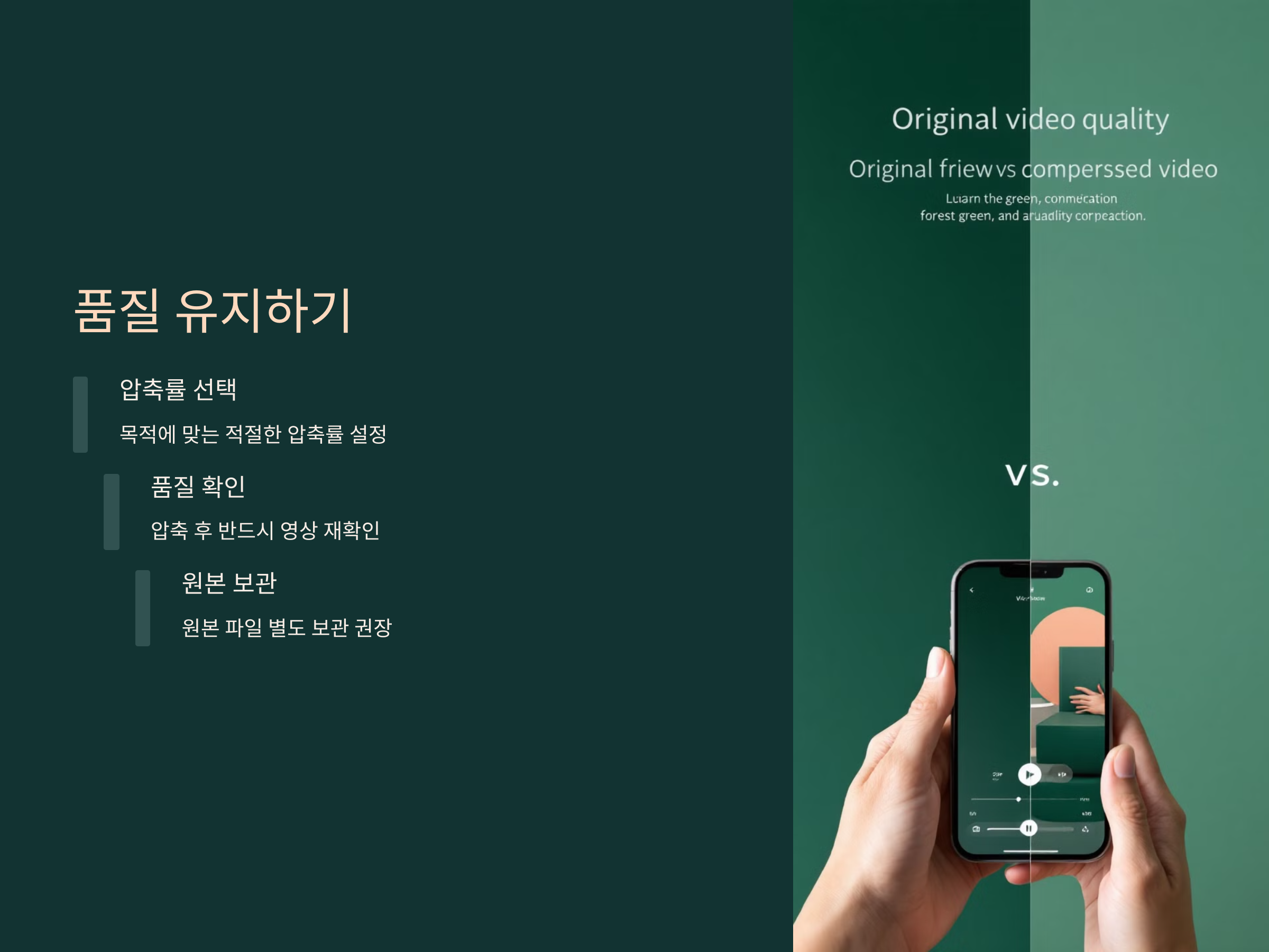 동영상을 압축하면서 중요한 것은 품질을 얼마나 유지할 수 있느냐입니다. 압축률이 높을수록 파일 크기는 줄어들지만, 그만큼 영상의 품질은 저하될 수 있습니다. 그러므로, 압축 후 품질 확인은 필수적입니다.