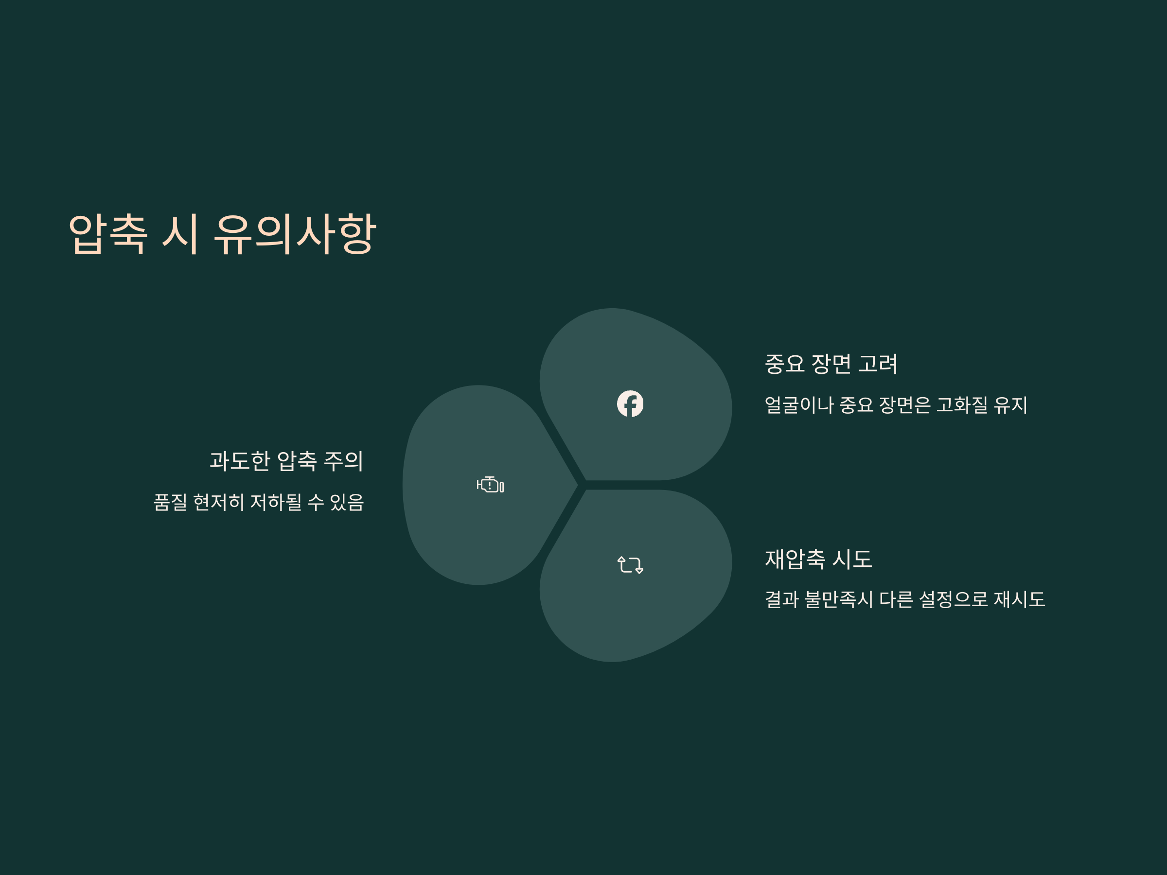 스마트폰으로 동영상을 압축할 때 몇 가지 유의사항이 있습니다. 첫째, 너무 과도한 압축은 영상의 품질을 현저하게 떨어뜨릴 수 있습니다. 그러므로, 압축 전에는 항상 원본 영상의 품질을 고려하고, 적절한 비율로 압축하는 것이 중요합니다.