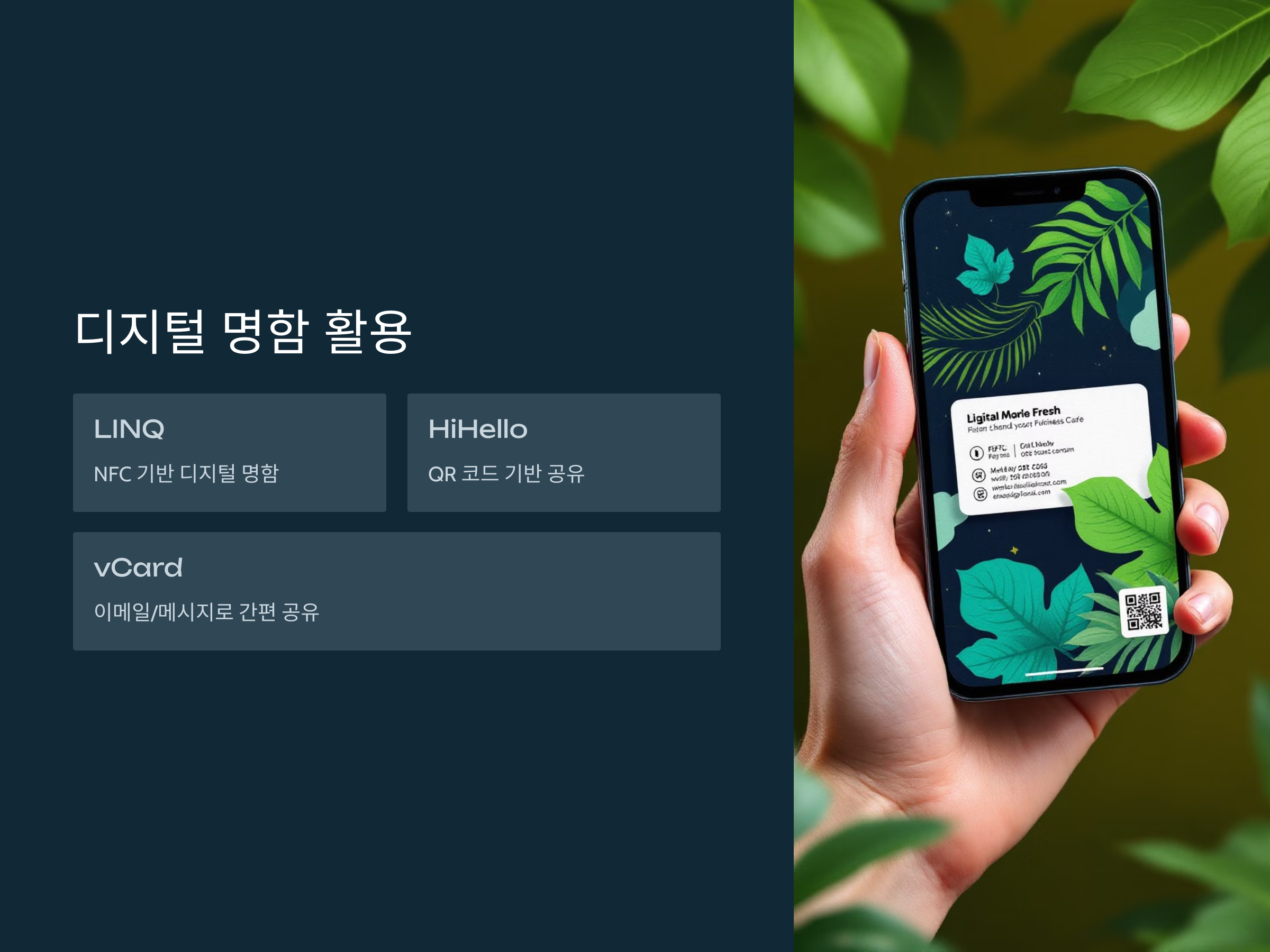 종이 명함 대신 디지털 명함을 활용하면 더욱 편리합니다.