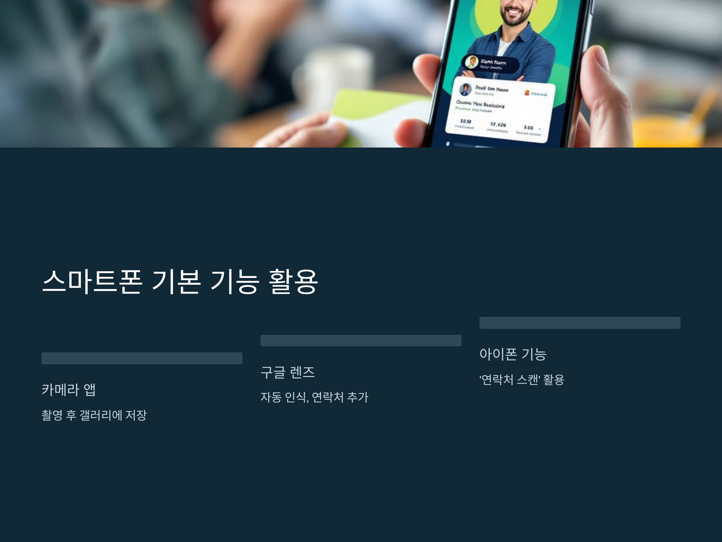 이처럼 스마트폰 기본 기능만으로도 명함을 효과적으로 저장할 수 있습니다.