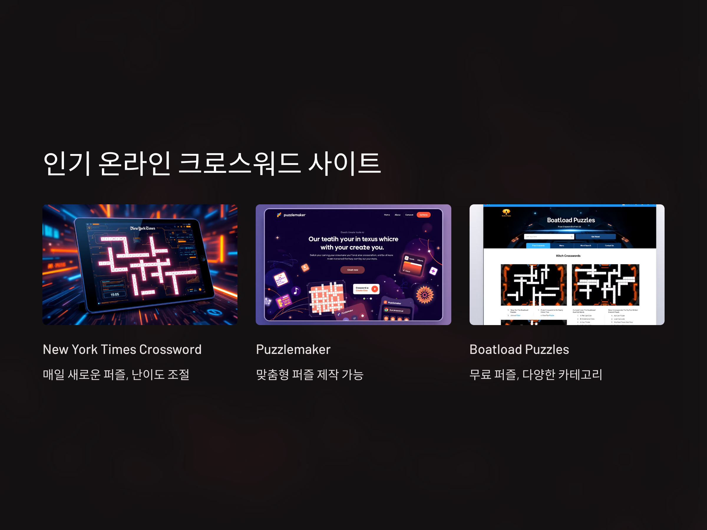 온라인에서 크로스워드를 즐길 수 있는 사이트는 매우 많습니다. 그중에서도 특히 인기 있는 몇 가지 사이트를 소개합니다.