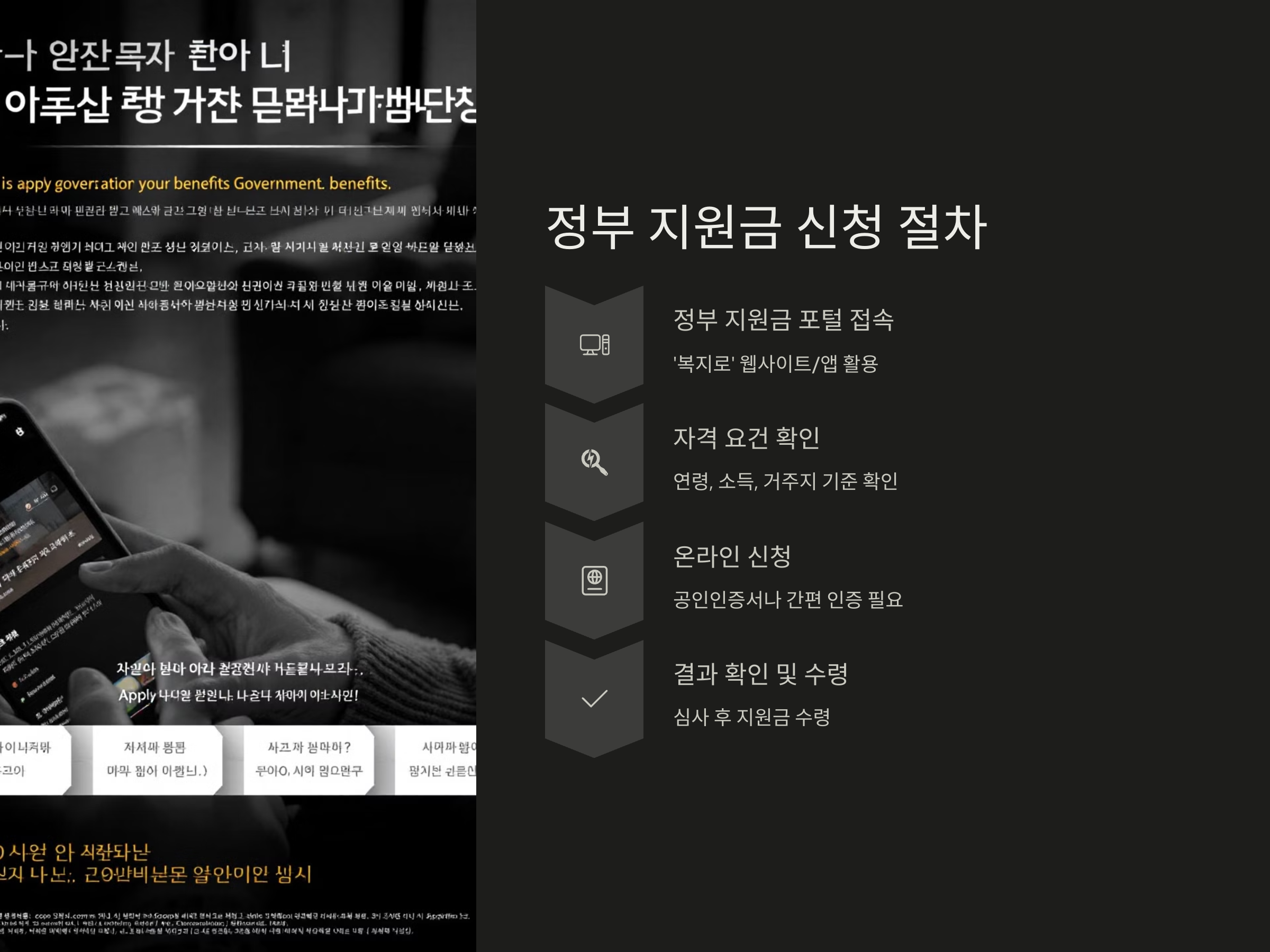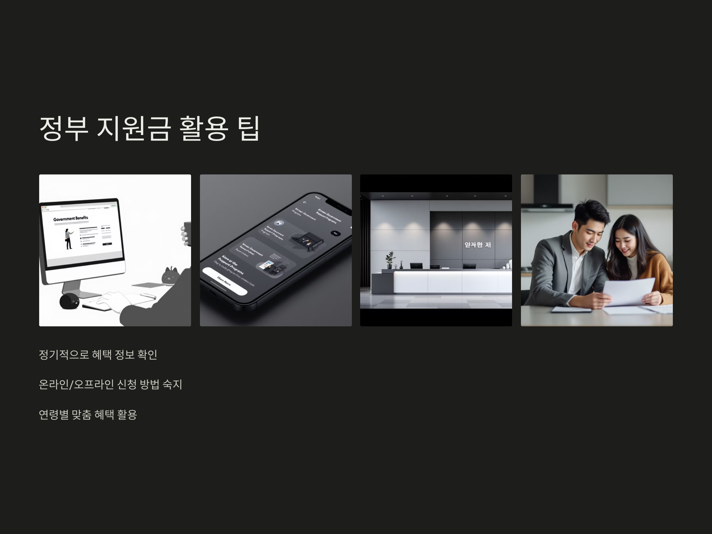 - 온라인 신청: 대부분의 정부 지원금은 온라인으로 신청할 수 있으며, 공인인증서나 간편 인증을 통해 신청합니다.