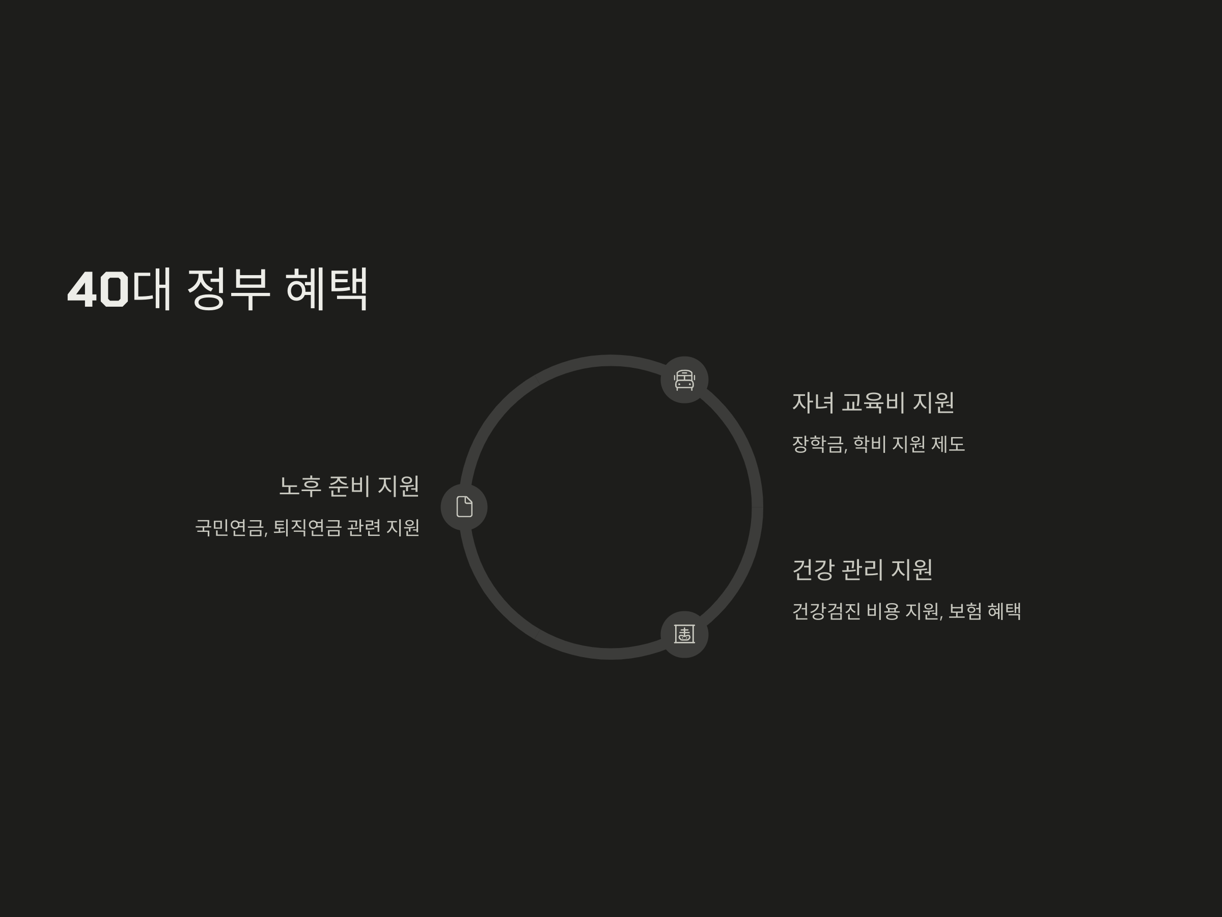 40대는 가정과 직장에서 중요한 결정을 내려야 하는 시기이므로 이러한 혜택을 잘 활용하여 생활의 질을 높이는 것이 중요합니다.