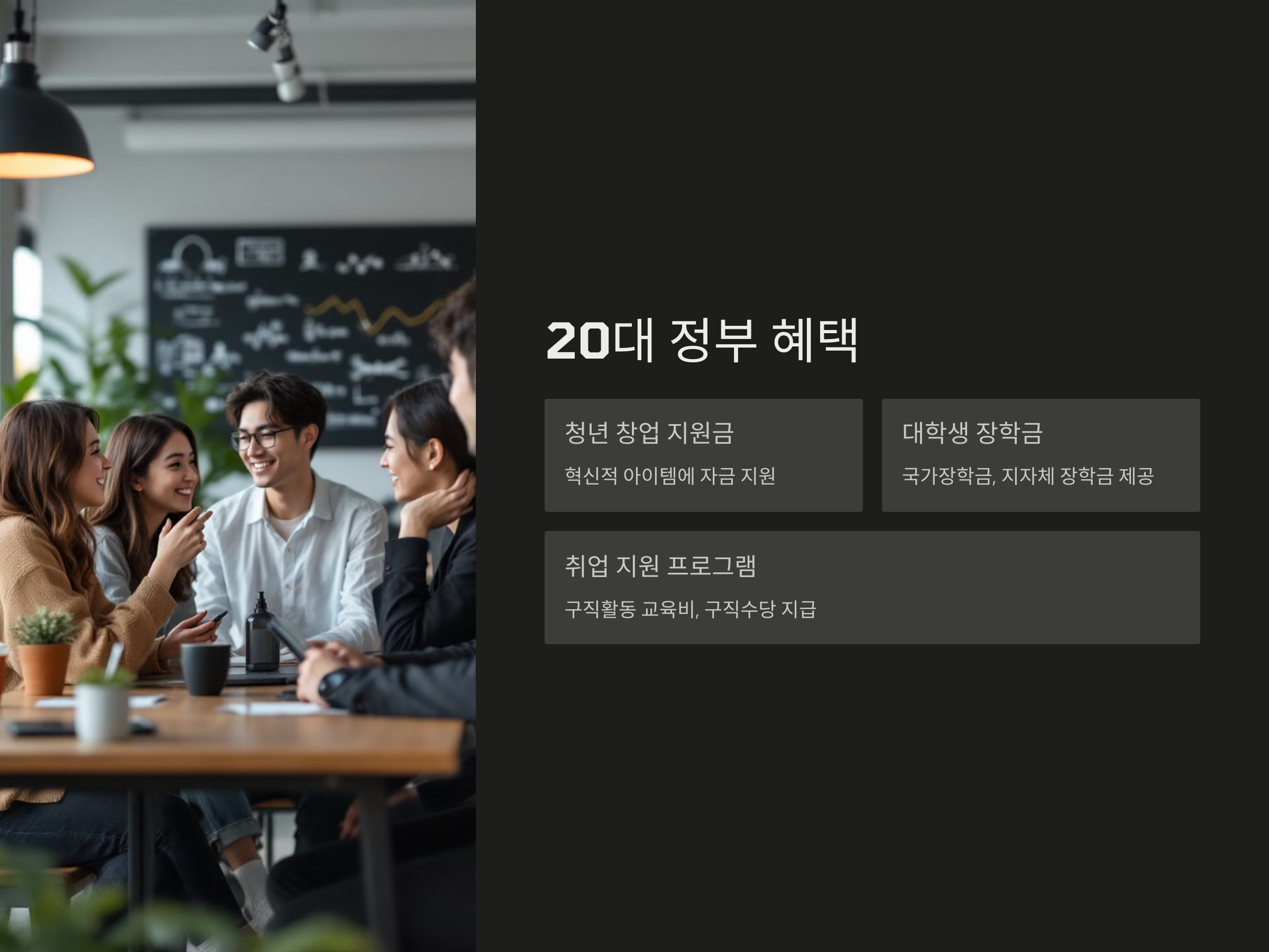 20대는 아직 경제적으로 자립하지 못한 경우가 많고, 이를 지원하기 위한 다양한 정부 혜택이 존재합니다. 특히, 취업 준비생이나 대학생, 사회 초년생을 위한 지원금이 많습니다.