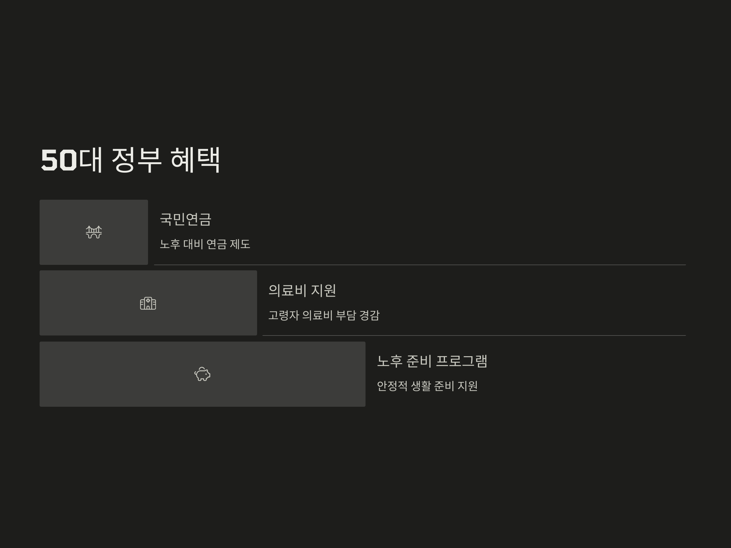 50대는 노후 대비가 중요한 시기이므로, 정부에서 제공하는 지원금을 잘 활용하여 안정적인 생활을 준비할 수 있습니다.
