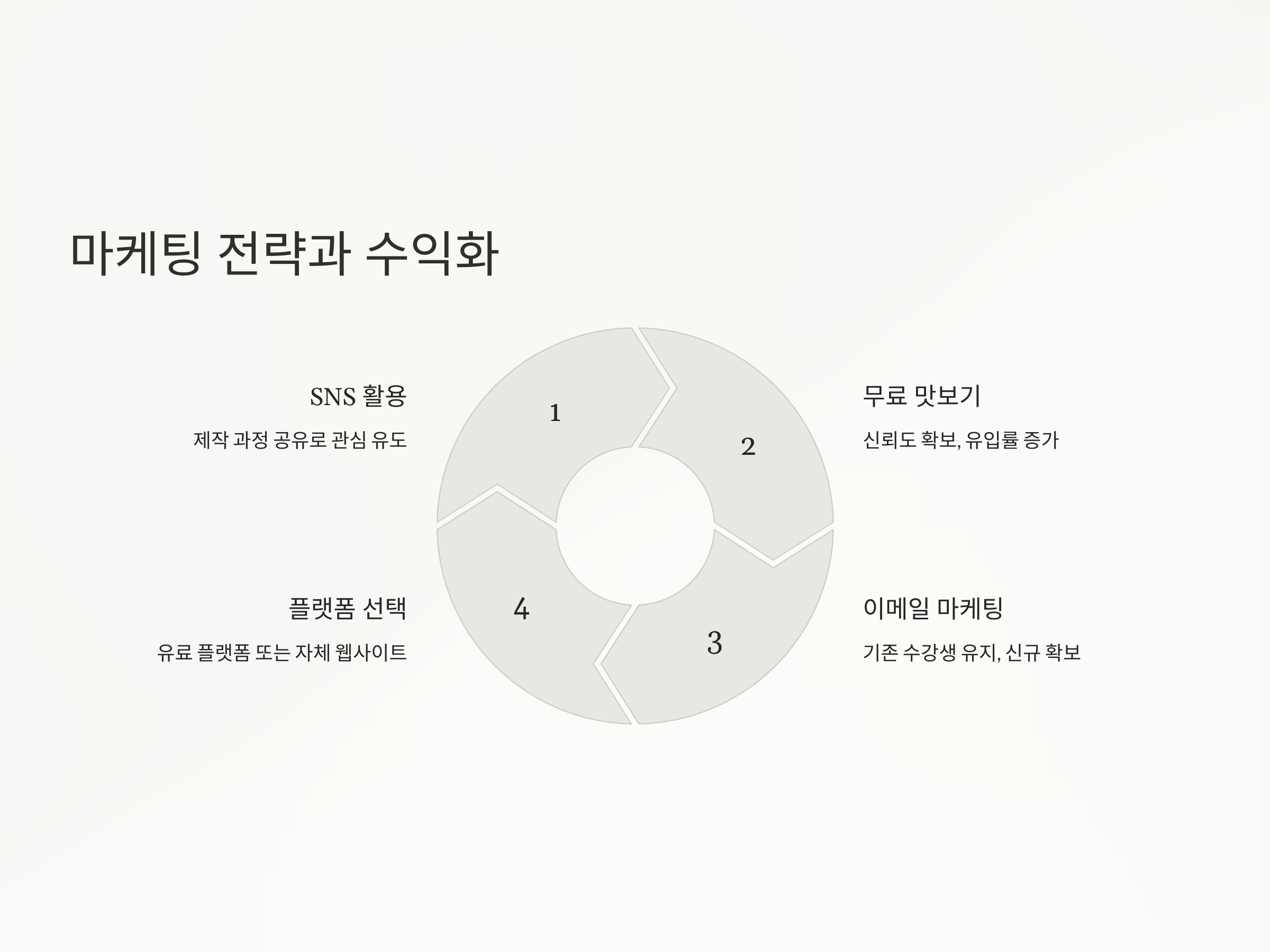 - 이메일 마케팅: 기존 수강생을 유지하면서 신규 수강생 확보