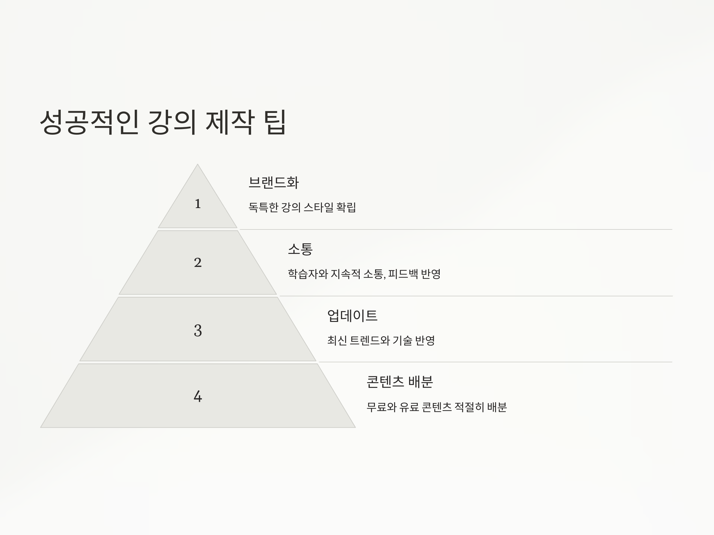 - 체계적인 강의 구성: 초보자도 쉽게 따라올 수 있도록 논리적인 흐름을 갖춰야 합니다.